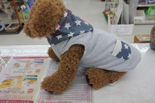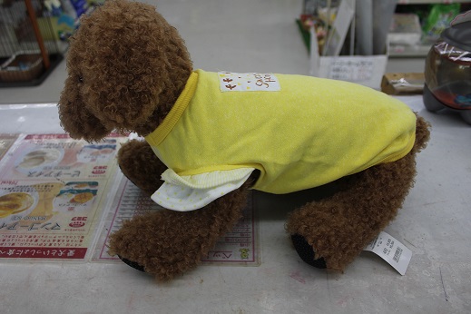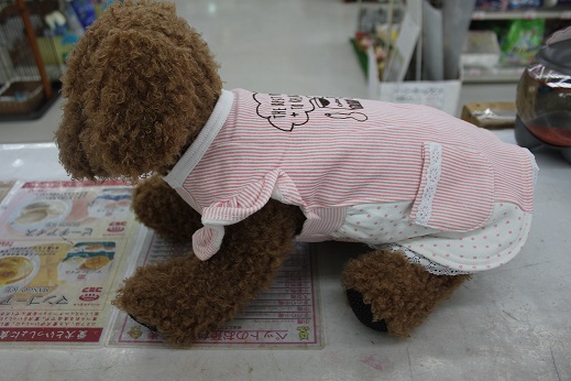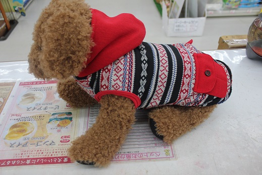 こんにちは松っあんです 先週ついに買いました!冷蔵庫!! 21日に届くまでわくわくが止まりません どのくらいの値段かビクついてましたが、 家は2人家族なのでそんなに大きくないちょうどいいサイズの、 大変なお手ごろ価格で、少し割り引きもして頂けました! 一目ぼれした冷蔵庫、一番のオススメは卵の置き場所がドア側じゃない、 パックごと入れられる卵保存引き出しです! 不器用なんでドア側だと卵落としちゃうんですよねぇ~…笑 そんな、アイス解禁まであと3日な三十路女子は置いといて、 今日は最近入ってきました秋冬洋服をざっくりご紹介 可愛いのがたくさん入荷しました! 来年は「酉年」ということで酉年コーナーも作ってみました ちょっと変なのも混ざってますが黄色いひよこ達も並べてみました では早速 ひよこなりきりパーカー 背中には羽つき! コッコバージョンもあります! ノルディックパーカー ポケット付きなのでおやつを入れてお散歩してみては? 色違いに黄色もあります! アメリカンパーカー 裏地はモコモコしてて暖かそうです 色違いにネイビーもあります! くまアップリケトレーナー 松っあんもお気に入りの1枚 色違いに赤ボーダーのシロクマさんがいます! そでフリルトレーナー そでのフリルがかわいいです! ティーカップワンピ プードルさんに似合いそう 以上です どの洋服も1号~5号まで、1点ずつしかないので 気に入ったお洋服がありましたらお早めに! 最後におまけ 今年の干支「申」にかぶってもらってるトリの被り物も販売中 来年の年賀状は愛犬に被ってもらって撮影してみませんか? 以上! 申と酉のコラボレーションでした