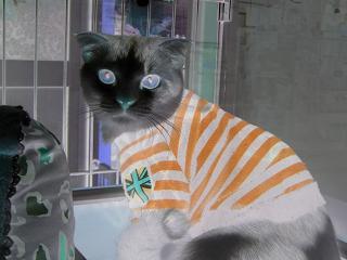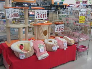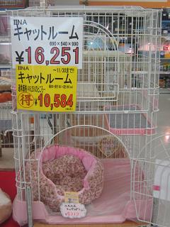 こんにちは 店長です。 先日予告がありましたが、、 本日より、 「ニャンニャンフェア」本格的に開催致しました 色々な種類のニャンコがお店にやってきております それに合わせて、 店内にはネコちゃん用のグッズが勢揃い!! かわいいベッドやキャリーなど、たくさんご用意しております そしてそして、、 当社の敏腕J常務に泣いて泣いて(大嘘)お願いして、実現した特売品!! 「キャットルーム」というネコちゃん用ケージ。 ステップが2つ付いていますので、実質3階建てになります ピンクが恥ずかしいという men's の方には ブルーもご用意しております 通常価格 ¥16,251のところ・・・ J常務特価!! ¥10,584 11/30までの限定特価ですので、お見逃しなく~ ご検討よろしくお願い致します ・・・ 他店からお借りしたヌコ、 「スコティッシュフォールド」の“ドラ〇もん”氏。 (命名者:松っあん) 着せてみました。 。。。 。。。 。。。。。。。。 o.........rz 最後にお知らせ~ 只今、当店ではアルバイトを募集しております ・20~35歳の方 ・週3日~働ける方 ・生き物が大好きで、 一緒に楽しいお店作りをしてくれる方 ※未経験者の方でもOKです 募集人数:若干名 詳しくは、店長:長坂まで ご応募お待ちしております