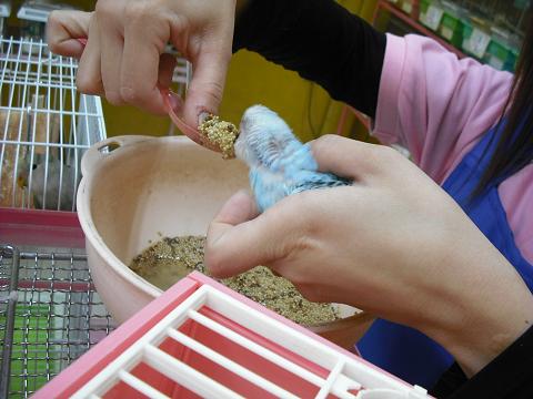 こんにちは、バイトのMです。 降雪予報に身構えていましたが、結局雨しか降りませんでしたね。 寒い事に変わりは無いので、なんかもうどっちでも良いです。早く春になれ!(>口<) タイトルを見て、新しい生き物の紹介を期待された方は申し訳ありません… 新しく来たのは、スタッフでございます。 Mによる盗撮の為、一応顔は隠しておきますね… 若い女性スタッフですよ! 私は言う程若くないので、後輩が来ると弟妹が増えたみたいな感覚になります。 鳥にご飯をあげる新スタッフF氏。 後ろで羨ましそうに見ているコザクラは、鳥小・熟女担当のywki氏お気に入りの1羽。 フロアのお掃除をしてもらった後は、 フェレットとか、 犬猫の爪切りも練習中で御座います。 上手に切ってもらってご満悦のダックスくん。 スタッフが増えたり減ったりしていて、ちょっと落ち着かない季節ですね… 可愛い動物達はいつでもまったりしておりますので、お気軽にお立ち寄り下さい(^▽^)ノシ