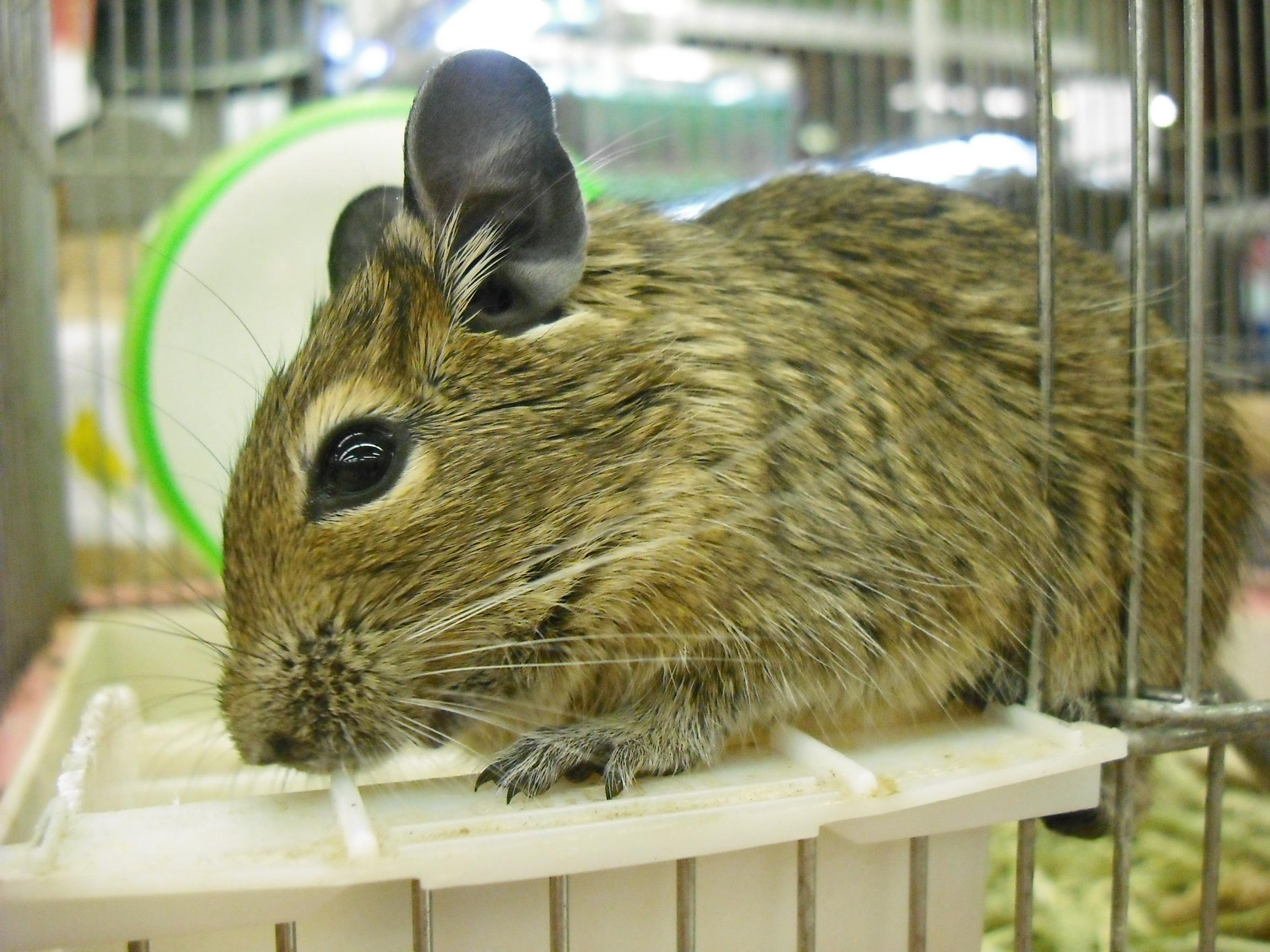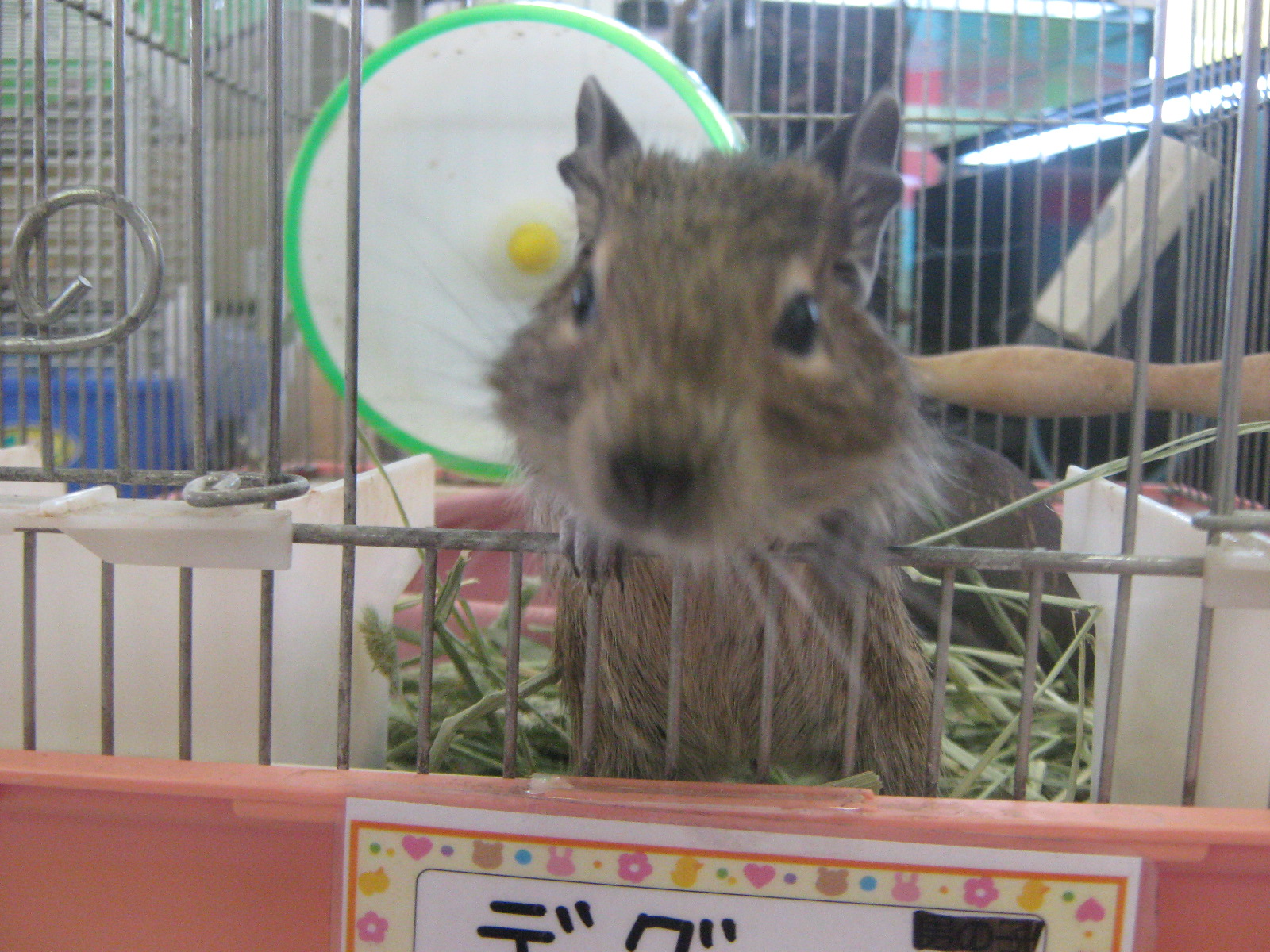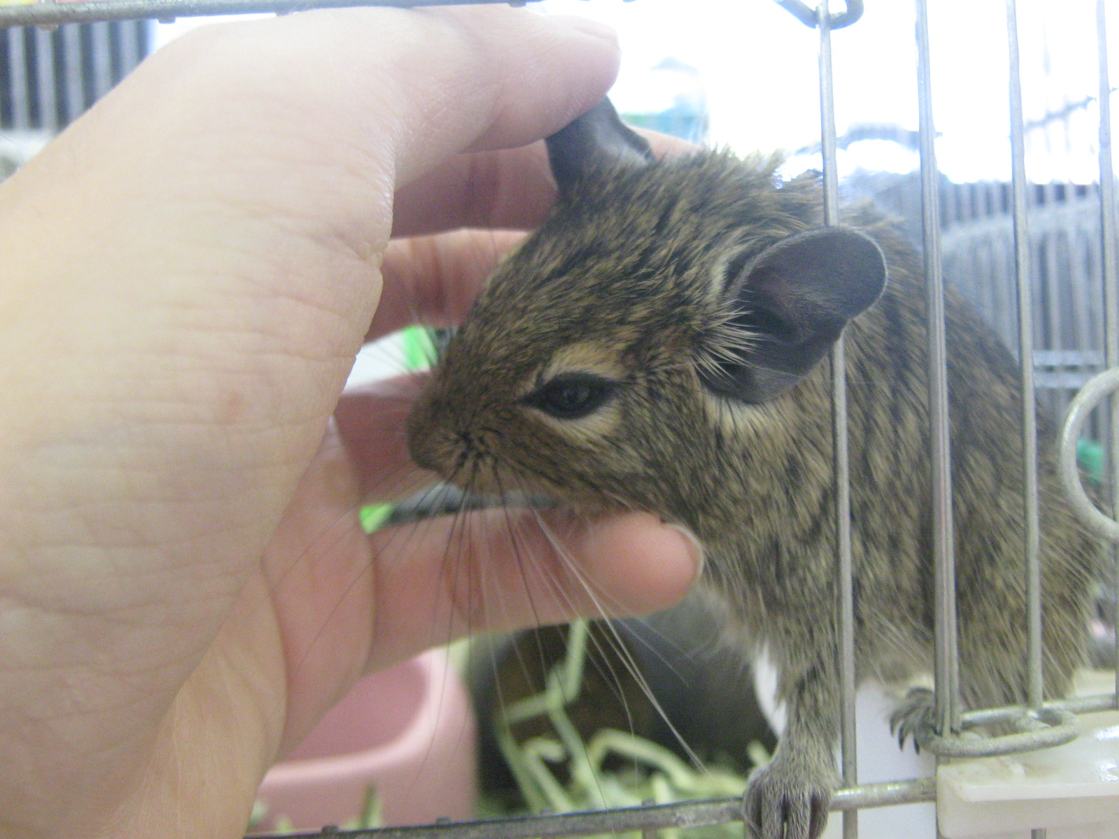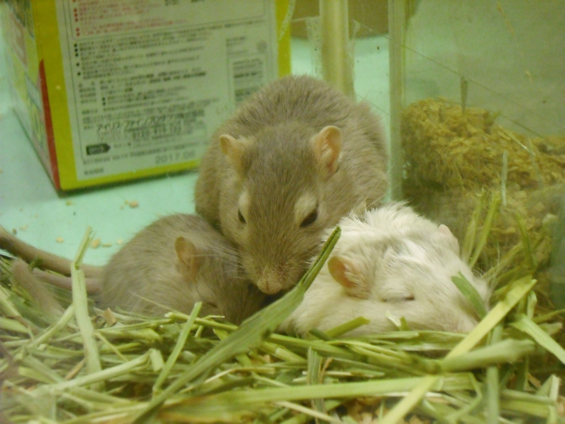 こんにちは、バイトのMです。 冬眠したい。。。働きたくない。。。 ダメな大人です。 ネコフェアの間、猫を借りる代わりに他の店舗へ出張していたダックスが帰ってきました。 相変わらずの、このポーズである。 ミニチュアダックスのハルノちゃん。 心なしか、大きくなって、伸びて帰ってまいりました。 でも美人さんです。 ただいま、クリスマス特価という事で大分お安くなっております… ちょっと早いですが、クリスマスプレゼントという事で、お迎えして頂けないでしょうか…∥ω・)チラッ ちゃんとトイレを使える良いコです。 たまにはお手とか出来ちゃう賢いコです。 とっても甘え上手な可愛いコです。 いかがでしょうか? ジャービルさんは新色が入りました。 ちょっと分かりにくいですが、グレーと白のコです。 寄り添って寝てるの可愛いですね。 実際は、淡い灰色がとても綺麗です。 ねずみ繋がりで、こんなコも。 おうちに引き篭もってて、羨まs……見辛いですが、パンダマウスです。 小さくて、ちょっと頼りなさげなお顔が可愛いのです。 ラットの大きさに馴れてしまった私には、ちょっと小さすぎな感じも…無くは無いです。 コチラはテンジクネズミの仲間。 デグーの女の子。 『どんぐりこ』ちゃん。(仮)。 扉を開ければ飛び出して来るし、手を入れれば甘噛みしてみるし、可愛いコです。ええ、とても。 (ちゃんと人馴れしていて、ほっぺナデナデも大好きですよ!) 若干、男の人の方が好きなんじゃないかと思われる仕草が見られますが… 年頃の女の子なので許しましょう。 デグーは割りと寒さにも強い生き物です。 ハムスターやモルモットに比べれば、多少寒いお部屋でも元気なので、冬でも飼い始めやすいのではないかと思います。 こちらもクリスマスって事で、お迎えしてみてはいかがでしょう…? お店でお待ちしております(^▽^)