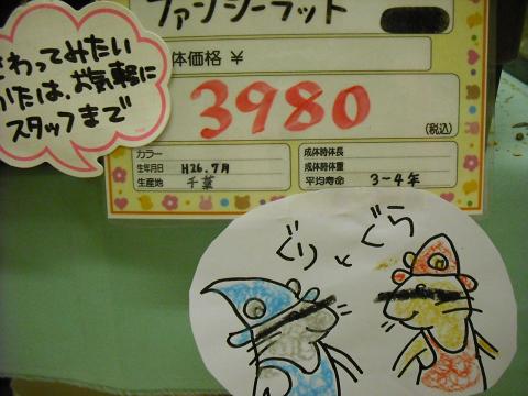 こんばんは、KYOさんです 今年もあと半月ですねぇ なんだかあっという間に過ぎた1年でした 毎年この時期になると始まる歳末セール!! もちろん今年も始まりましたよ 期間は12/13~12/25 おかげさまで流山店はいつにも増して賑やかです♪ 今日は写真多めでセール商品の一部をご紹介 鳥・小動物に~ もちろん犬猫用品も! ちょっと変わったセール品もありますよ それがこちら 普通セール品というのは価格が下がるだけのものが多いですよね? でも、こちらのバニーセレクションシリーズは価格は下がらずにチモシー1kgが付いてきます このチモシーは¥615相当 もしかしたら普通に値下げされるよりお得かもしれませんね これらはほんの一部ですので、まだまだセール商品はありますよ! 用品だけではありません!! 全ての鳥・小動物生体が10%OFF!! 気になる子がいたら、この機会にお迎えしてみてはいかがでしょうか 毎年ご好評いただいている、オリジナルカレンダーを今年もご用意しておりますよ~ この可愛いカレンダーを、1000円以上お買い物されたお客様に差し上げております どっさり用意してありますが、数に限りがあるのでお早めに~ 今年1年の感謝を込めた歳末セールはまだ始まったばかりです! それではまた次回~(・∀・)ノ