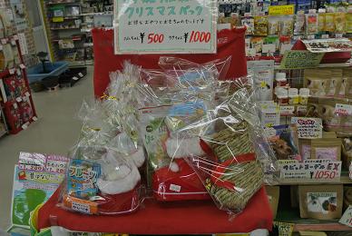 こんにちわ 店長です もうすぐですね。。 「クリスマス」 なんだかソワソワするのは・・ワタクシだけですか?? 意味無く楽しみですっ ヽ( ´¬`)ノ 店内もクリスマスの雰囲気で賑やかでーす 可愛らしい「プレゼント」ものも用意してみました 「クツ」に入りきらないほどの お楽しみグッズ コチラは「ハム」ちゃん用の『クリスマスパック』 続いて・・ コチラは「うさぎ」さん用と うたっておりますが 「モル」ちゃんにもオススメですよっ 担当の きょうちゃんがニッコリしながらパックしていたのを 記憶しております~(´ω`*) 数量に限りがありますので お早めにどーぞっっ!! あっ!ちなみにお値段は 「ハム」ちゃん用 ¥500 「うさぎ」さん用 ¥1000 となりま~す あとですねぇ だいぶ売れ始めてます。。。。 わんちゃん用『ケーキ』&『ムース』 おいしそうでしょっ?? ちなみに「当店 売行き TOP 3」は・・・・ でーーーーすっ!!! コチラの演出は松っあんが ニコニコしながら作ってくれました~ ( ´∀`) たくさん売れると。。いいなぁ~~ 『イブ』&『クリスマス』ですしねっ お家のご家族に「プレゼント」としてぜひ いかがでしょうか??? お待ちしております 『 お知らせ 』 12月31日 と H26 1月1日 の二日間は 営業時間変更となり 朝10:00 ~ 夜 18:00 までとなりますので よろしくお願い致します ランキング参加してます 毎度毎度「ぽち」ありがとうございます!! おかげ様でランキング上位に居させてもらってまーす 引き続きお手数ですがご協力よろしくお願いします 「旅行当たるかも 企画」 多数の応募ありがとうございますっ まだまだ応募期間ありますので ドンドン ご応募、よろしくお願いします ゚+。 (o・ω-人)・.。* くわしくは⇒旅行いこっ! コメントいただきました 『チョッパー』さま 飾らせていただきましたよぉ~ まじまじ見たんですけど、コレは可愛いですねぇ~~ いやぁ・・ありがとうございますっ!! 大事にかざらせてもらいますねっ オカメさん、ぜひ抱っこしてみてください お待ちしてますよー お互いに良い年越しできると良いですねっ 店長でした !!! ま、松っあん! それは~~!!! うまいねぇ~~ どこで、展開されるのかぁ 楽しみぃッ