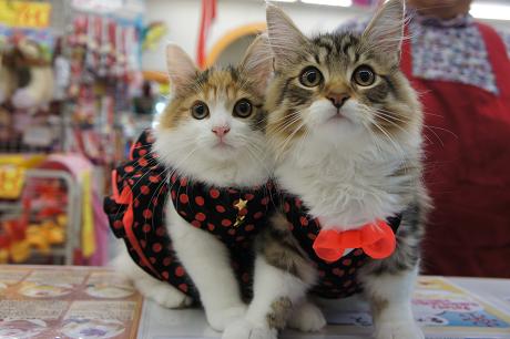 こんにちは 本日、2回目の更新。 まさかの主任めがねです。 昨晩、以前当店にてお迎え頂いたメインクーンが なんと オコサマを出産したということで、当店にお披露目に いらして下さいました どうですか~ お兄ちゃんのMくん(右)と妹のYちゃん(左)兄妹です なんて可愛らしいんでしょーか 特にYちゃんは、お母さんのAちゃんにソックリなんですね~ ほんとにイケメンなお兄ちゃんと美人の妹さんでビックリです しかも、お洋服は飼い主様のお手製 毎回、完成度の高さに驚かされてマス Oさま、またのご来店お待ちしております