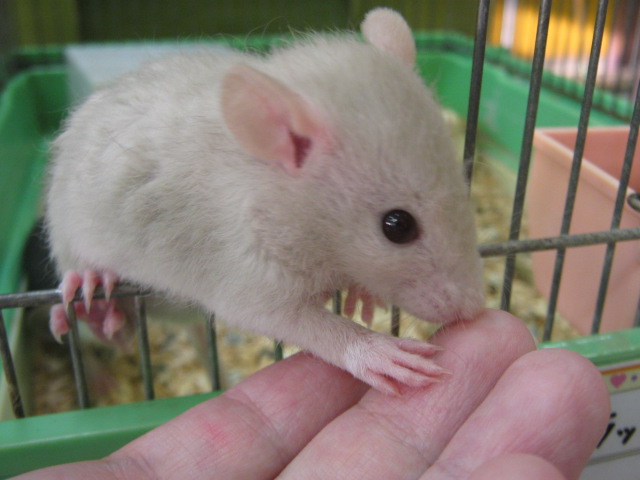 こんにちは、バイトのMです。 ついに流山店のエアコンも動き出しました。 ボロエアコン様なので、いつ挙動不審になるか分かりません。 そんなコトより、5月23日の記事を覚えているでしょうか・・・? 私のお気に入り。 正体が分かった人は店長にこっそり教えれば10%OFF! 本日までとなっております。 コザクラインコフェアーの方も、本日まで。 お店は8時までです! まだ間に合いますよ!! とまあ、これだけでは寂しいので、上の写真の答えも兼ねて紹介してしまう訳ですが。 クイズは、この記事を読んでからでも大丈夫です。 これを見たらこのコたちが欲しくなっちゃいますよ! じゃーん! ファンシーラットのちびっこ達が来ました!! ラットは頭の良いねずみの仲間です。 こうして扉を開けてあげると、自分から手の上に乗ってきたりします。 ハスキーカラーも来てます。 ふたりでわちゃわちゃと寄ってきました。 おや? 写真、左上のほう。 お家の中にも居ますね。 きみは来ないのかな? 。 。 。 。 すごーく眠そうだったので、そっとしておきましょう・・・ ほら、ファンシーラットさん可愛いですよね。 欲しくなっちゃいましたね。 色や模様の種類に個体差があるので、お気に入りのコは早めに連れて帰りましょう! 今回来たのも3匹だけです。 人気の小動物なので、あっという間に居なくなっちゃいますよー! お電話での予約も承ります。 楽しいラットライフ・・・いかがでしょう?