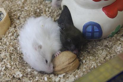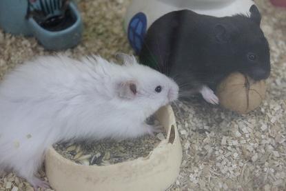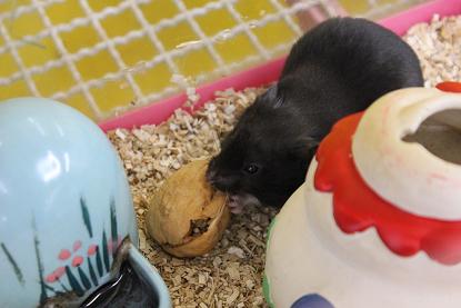 皆さん こんにちわ~ 鳥・小動物担当の結城です。 今日は 胡桃をあげた時の ゴールデンハムスターの様子を ご紹介します。 ハムケージに胡桃を落としてみる 白と黒がかぶりついてくる 黒が持っていく が、白がおいついて ダッ カン! 丁寧にお皿において食事中 黒が襲撃 抗戦する白 手を使いさらに抗戦 が、黒奪う そのまま持って行き 安全な場所を探して 長かった戦いに終止符 どうでしたかぁ?? 当店のハムちゃん可愛かったですか? 気になった方は是非、ご来店を~ 長々と失礼しました!! お知らせ 当店のゴールデンハムスターにもあげている このフード 「リッチ・テイストハムスター」 腸内環境を整える働きのある乳酸菌(フェカリス菌)と、消化吸収・被毛の健康維持はサポートするビール酵母を加えることで、毎日の食事から健康を手助けします。また、歯の伸びすぎを抑えるため、適度な硬さに仕上げられています。 オススメですので試してみて下さい。 通販サイトからもご購入できます↓↓↓ http://webpets.jp/SHOP/30011072.html