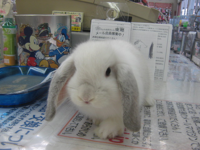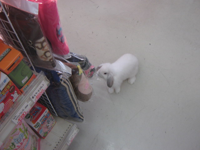こんにちは!そしてはじめまして 流山店ブログで度々名前だけ登場していました、鳥小動物担当のKYOさんです! 今までブログにはノータッチでしたが、本日より僕も更新に参加させていただきますね。 初のブログで少々緊張していますが、これからよろしくおねがいします♪ さて、はじめましてでいきなり商品紹介というのもなんなので、今日は僕のお気に入りラビットを紹介します! ものすごく可愛いですよ~ ? !? まだまだ小さいロップイヤーの女の子、白玉ガールです♪ なでなで大好き~ 店内に入ってすぐ目の前のケージにいますが、とってもよく馴れてくれているので、たまに店内に放して一緒に遊んでいます 色んなものに興味を示しますねぇ そんな白玉ガールはH26.6月生まれの女の子です お店に来た時はなでてあげると喜びますよ♪ 初めてでしたが、ブログを書くのも面白いですね♪ みなさんにお伝えしたいことはたくさんあるので、これからも頻繁に更新していきますね! ここまで読んでいただき、ありがとうございました これからもよろしくおねがいします