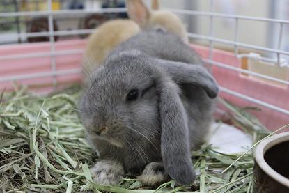 皆さん こんにちわ~ こうみえて肉が大好きな結城です 今日は私が密かに溺愛している ウサギちゃんを紹介します その子とは・・・・ この子!! 前にも紹介したロップ・イヤーくん 最近どんどん可愛さが増してきております これがこの子の基本の構え いつも餌皿に乗っかってます。 で、そこからのぉ~ 食べる!食べる!食べる! からのぉ~ 味わう!!! と、いつもこんな感じで食事をしています。 そして、食べ終わったあとにぃ~ なでなで! すると気持ち良さそうに目を閉じちゃいます! さらに、その姿を上から見るとぉ~ ちいちゃい足を伸ばしているのです!!!! 普通、なでさせてくれてもこんな足を伸ばして リラックスする子はそうはいません!!! こんな可愛いウサギを家族にしたくありませんか!? 気になった方、気に入った方は是非、足をお運び下さい! では、結城のおのろけ話でした。 失礼