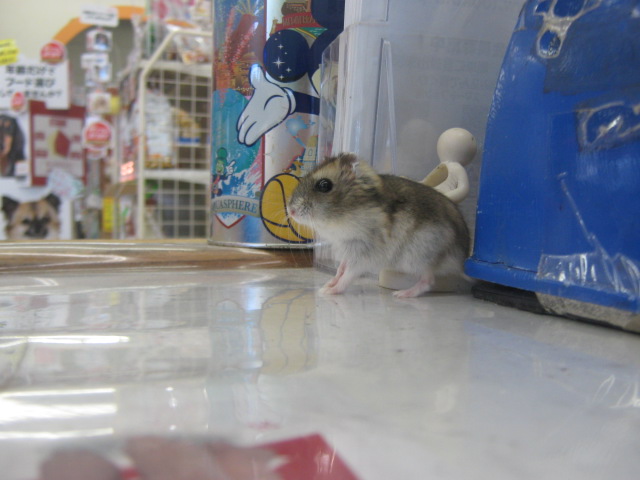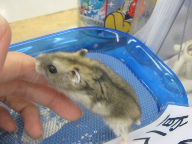 こんばんは、KYOさんです! お昼過ぎから激しい頭痛に襲われ、これは久々にヤバイかな・・・と思い休憩を頂いたのですが・・・ 30分寝たらケロッと治りましたヽ(・∀・)ノ そういえば去年風邪をひいた時も1日で治りましたし、蚊に刺されて痒くなっても10分くらいで治ります 我ながら凄まじい回復力 どうでもいい話はこのくらいにして、今日はハムちゃんをご紹介します♪ ジャンガリアンの女の子です この子はとてもよく人馴れしていて、このように手に乗せると指をペロペロ舐めてきます 一緒に遊ぶこともできちゃいますよ~ セロテープの周りがお気に入りなようで、レジに放すと大体ここに来ます しかし年代を感じるテープ台ですなぁ・・・ 普段はこんな可愛いケージで過ごしています 11/30まではジャンガリアンが¥880となっております この機会にお家に迎えてみてはいかがでしょうか それではまた次回~(・∀・)ノ お知らせです 11/26~11/27の2日間、社員研修のため臨時休業とさせていただきます ご迷惑をおかけして申し訳ありません 11/28からは通常通り営業いたします