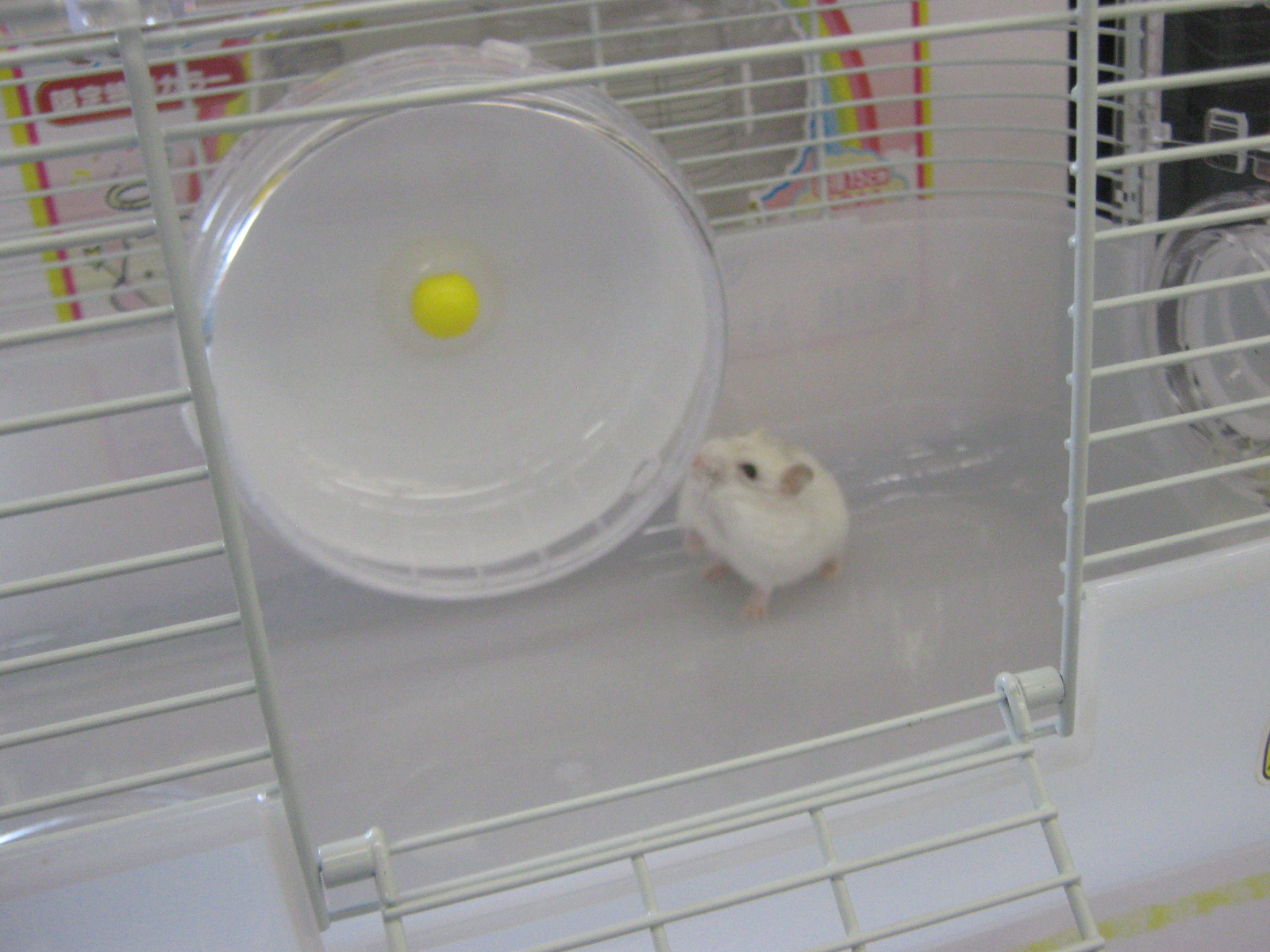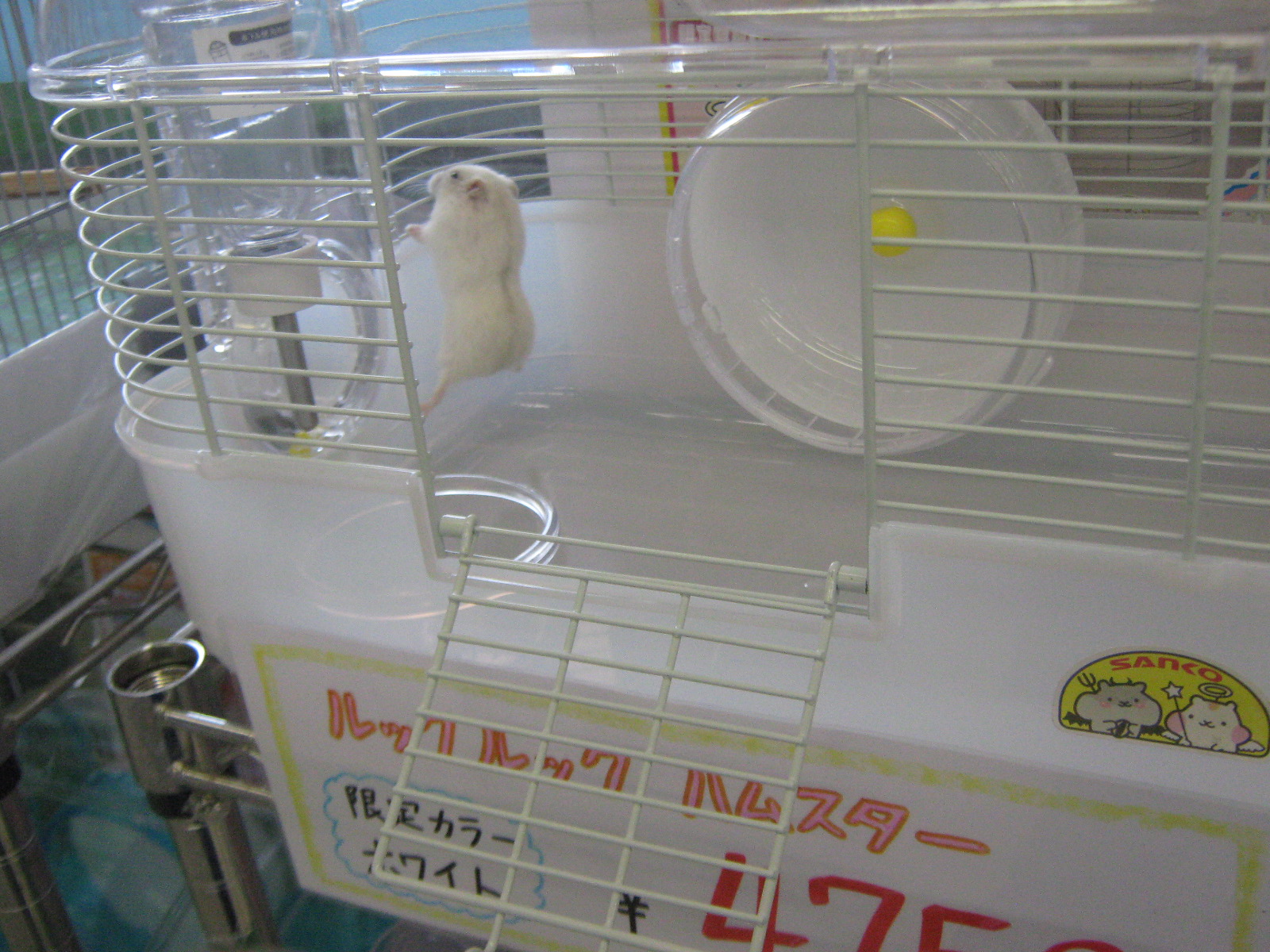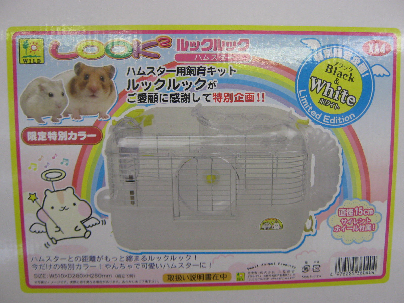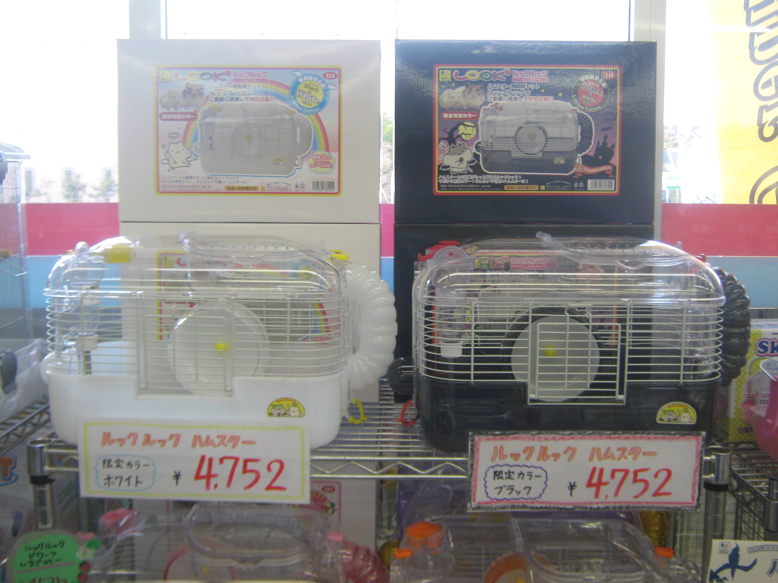 こんにちは!KYOさんです 昨日新商品が入荷しました ルックルック ハムスター 限定カラー(ブラック&ホワイト) ルックルックは当店で一番人気のハムスターケージです! デザインが綺麗なだけでなく、パイプで拡張したり小型のキャリーになったりと色々なことが出来る商品なんですよ~ そんなルックルックの期間限定カラー(ブラック&ホワイト) 毎年この時期は限定カラーが出ているのですが、この色は初めてだと思います(たぶん) 付属のサイレントホイールも限定カラーとなっていますので、ホイールコレクターの方は要チェックですね! (コレクターがいるかどうかはわかりません) パッケージもかわいいです 個人的にホワイトが気になったので、お店の純白ハムちゃんを入れてみました♪ お!やっぱり似合う 実際に飼う時は床砂を敷くので、下は純白ではなくなりますけどね 楽しそうに遊んでおりました♪ この純白ハムちゃん、実は普通のパールホワイトとはちょっと違うんですよ 背中の黒いラインが薄い茶色なんです!! こちらが普通のパールホワイト 並べて比較するとよくわかると思います たまにこういう綺麗な子がいるんですよね 正式名称が無いので、流山店ではパールホワイトプディングという名前で販売しています 人馴れもしているので、手に乗せて遊ぶこともできますよ♪ この子とホワイトのケージがあまりに似合っていたので、特別価格で一緒に販売してみようと思います 流山店限定 12/31までにパールホワイトプディングとルックルックホワイトを一緒にお買い上げの方は ケージとハムちゃんセットで ¥6000 ルックルックが¥4752 ハムちゃんが¥2580 なので、これはかなりお得です 11月中はハムちゃんがお安くなっておりますが、この子は対象外ですからね 当然1匹限定ですので、気になった方はお早めに~ それではまた次回~(・∀・)ノ お知らせです 11/26~11/27の2日間は社員研修のため臨時休業とさせていただきます ご迷惑をおかけして申し訳ございません 11/28からは通常通り営業いたします