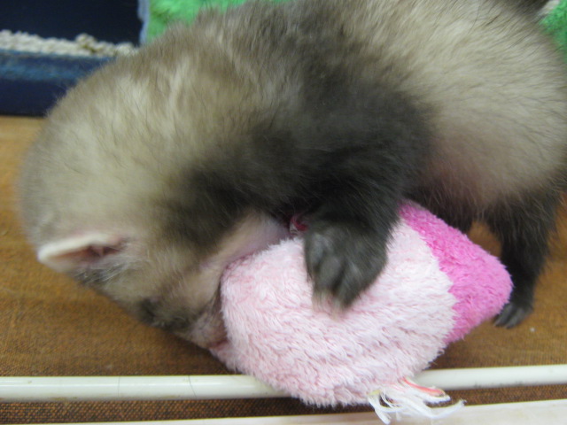 こんばんは、バイトのMです。 日中ずっと雪が降っていてあまり外に出たくない感じの天気でしたね。 ですが、流山店にはかぁわいいコがやってきましたよ! まだよちよち歩きのパスバレーフェレットちゃん。 25年12月生まれの女の子です。 おもちゃを見付けて、ガブガブ`・口・ こっちからも、ガブガブッ!・皿・´ とっても元気です。 たくさん遊んで、満足のお顔(`・ω・´)=3 赤ちゃんフェレットは久しぶりです。 お探しの方は流山店まで!!>口<ノシ 続きは拍手プチ返信。