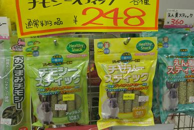 こんばんわ 店長です お正月、みなさんはいかがお過ごしですかぁ?? だいぶUターンラッシュが始まっているようで 道も混雑しているようですねっ イライラからくる事故、十分に気をつけてくださいませっ では今日は小動物関連の特売品のお知らせ。 サンコー 『ラビットプラス 各種』 肥満傾向のコ向けが結構な売行きです 通常¥1090の品 ¥980にて マルカン 『天然消臭トイレ砂(活性炭で消臭) 』 ニオイの吸収力バツグンの「炭」をふんだんにつかいました トイレ砂!! 部屋を締め切りにするこの時期、もともと売行き好調な商品 さらにお求め易くなり 通常¥980の品 ¥880にて ハイペット 『チモシースティック 各種 』 手に持って与えることが出来るので ウサさんとのコミュニケーションにオススメでーす 通常¥313の品 ¥248にて サンコー 『ハムスター用 バスサンド 』 砂浴びで体キレイきれいっ!! 通常¥399の品 ¥298にて ニチドウ 『フェレットグロース 1kg 』 ビール酵母による整腸効果 必要不可欠の「タウリン」配合 そして何より・・・ 食いつきバツグン!! 通常¥1134の品 ¥945にて あとですねぇ。。。 厚手ハンモック! コチラは特売品ではないのですが・・ 可愛いデザインのもの ありますよっ!! これは「鳥」さん向けですね。 アサヒ 『ミニペットヒーター 20W 』 小型のカゴで飼われている方が意外と多く・・・ 同メーカーの40~100Wものだと、大きすぎてしまうので・・ そんな方にオススメ。 通常¥3654の品 ¥3150にて ぜひご来店くださいねっ ランキング参加してます 今年もお手数ですが、ひとつ・・『ぽち』をお願いいたします。 おかげ様でランキング上位に居させてもらってまーす 『旅行 行けるかも企画』 是非 ご参加くださーーい 店長でした ウサギが肩を抱くっ そんなスガタを発見してしまったので・・・ ねっ! ねっっ!!? 上手いこと抱いてるでしょ~~ ^ω^ 腕で肩を抱くのではなく 「耳」で肩を。 でぇ~ これまた「ツボ」なのが・・ らいおん のくつろぎ方! 横寝 :*:・(*´ω`pq゛ポワァン