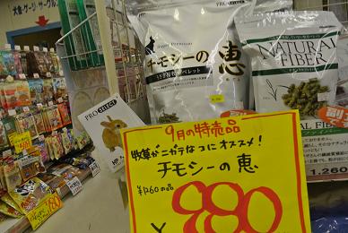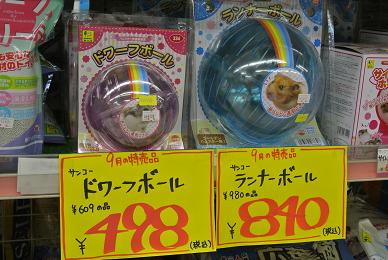 こんにちわ 店長です では早速ですが『今月の特売品』のお知らせを。 。。。。今日は小動物商品ですよっ 「秋」! 運動の秋!!ということでハムスターの 『ドワーフボール』 ドワーフハムちゃん向けですねっ 通常¥609の品 ¥498にて 『ランナーボール』 ゴールデンハムちゃん向けですよー 通常¥980の品 ¥840にて お掃除する際にちょいとコチラに入っていただきましょー。 ハムちゃん大喜びで走り回りまーす ただしっ!!! 長時間の使用はおやめ下さい 目が回ってしまうので・・・ねっ 『白樺チップ』 名前の通り「白樺」を使用しております。 アレルギー反応の多い「スギ」や「マツ」を一切つかっておりませんので ペットさんはもちろん!飼い主様にもやっさしー 「床材」です!! ¥348にて こちらは主に「ウサギ」さん、「モル」さんを飼われている方に重宝されています が! ハムちゃんにもつかえますよ~~~ 「うさピカシリーズ」 『毎日のお掃除ティッシュ バリュー70枚入り』 クエン酸でサッと汚れを落とし、汚れを付きにくくする成分でコーティング!! おトイレ周りに最適ですね。 ほかにも ほんの~り香る「アロマミント」 緑茶エキスで天然消臭! もちろんトイレ周りだけではなく、ケージ全体のお掃除にもオススメです 通常¥980の品 ¥880にて もうご存知の方も多いですよねっ 食べる牧草『ロングマット 1kg』 超高品質で、食べもとっても良い「牧草」です 通常¥1344の品 ¥978 まとめて買ってくださいませっ!!! こちらもかなり売行きがよろしい~ 『チモシーの恵』 最近少しずつですが牧草を「嫌う」というお話しを聞きます。 そんなコ達がよろこんで食べてくれるということで 評判も上々 牧草でクシャミ・鼻水連発なんて方にも喜ばれております 通常¥1260の品 ¥980にて なかなかこのお値段で出ることがありませんので ぜひお試しくださーい !! ちょっとしたコミュニケーションの場として設置しました・・・・ コチラも・・・良かったら楽しんでいってくださいませっ 店内の草食のコ達に与えてくださいね! 最後! 変わりハムスターが入荷。 『リアルブラックジャンガリアン』 限定2匹ですが 通常¥2480を ¥1980にて 結構可愛いですよ ご覧くださいませっ 。 。 。 。 こっそり育てている「ヘビ」が脱皮したんですが 見たくない方は・・・・ご遠慮下さい・・・ ・・・でも・・・キレイに脱げているんで・・見て欲しいッす 分かりますかぁ~~~!!! ちゃんと「目」のところも一緒に脱げてるの~~ 一本つるっと脱げていましたヨーーー 実物見たい方はワタクシまでどーぞ コメントいただきました 『チョッパー』さま 田舎もなかなか良いもんですよね なかなか帰るのにはしんどい距離ですが、ちょいちょい顔見せに帰ってみます お仕事忙しいのは良いことと思いますが、無理して体壊さぬよう 気をつけてくださいね またゆっくりお話しできたらと思いますので遊びに寄って下さいませっ 店長でした