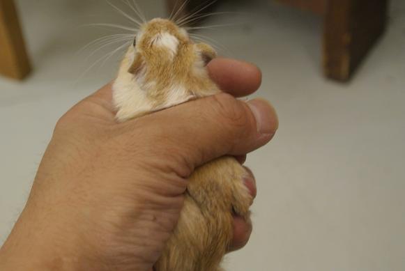こんばんわ 店長です 今日Mさんに「ちょっとちょっと!!知ってる?あのねっ!実はさぁー・・」 「穴、あいてんのぉ~~お気に入りなのにねぇ・・ あいてんよ~」って言ったら 「知るわけないじゃないですか!店長のくつ下事情」って。 ・・・反応は、ワタクシ的に『◎』 でした Mさんすばらしい 返しありがとー!! で・も・! おっさんの足 穴あいてるってどうなのだろうか?? では、本題! 6月11日に流山店で生れました ちょ~~~!!かわいい『ウサギ』さんのご紹介 ドワーフラビット(母)と ライオンラビット(父)の掛け合わせになります。 二人は「兄妹」で オレンジが男の子(兄)でー白茶ブロークンが女の子(妹)。 って勝手に決めているだけですけど 行動は・・ 妹を想う『兄』!! 毛づくろいも うっとりぃ~~ 兄に頼りっぱなしな 『妹』!!! すてきですねぇ~~~見ているだけでも・・すてきですねぇ~~~~ 「妹」さんは結構社交的で、撫でられるのも『平気』。 やればやるほどーーーうっとりに しかも セクシィ~~ 足がとっても セクシィ~~ おっさんの穴あきソックスよりも 見ていて癒されますよね・・ 『兄』さんは、やや引っ込み思案かなぁ~ 『妹』にはものすっごく世話焼きで、守ってる感がでているんだけどねっ そこが良いところか。 うん! そんな 仲良し『ミニライオン』兄妹。 H25 6月11日生まれでございます お値段は ¥12800にて 体も小振りなコ達なので お世話もラクかなぁ~~ そして・・・次なる ベビーたちも ちゃくちゃくと育っております コメントいたただきました 『ham』さま ご無沙汰してますっ! 目の心配していただきありがとうございます!! そんなにたいした「アレ」ではないので・・・スミマセン 新たに『ダンボラット』やってきましたよ~~ なんかぁ、すでに「揉まれる」ことに慣れてきたようで・・いーカンジですね!! 店内も涼しくなるよう工夫してみましたので・・ 良かったら寄ってみて下さいね 『じゅりあ』さま 「駆虫」、無事終了して何よりです 次から次と、大変でしょうが 丁寧に一つずつ がんばっていきましょうねっ これからの時期、気温の変化も激しいようなのでお互いに気をつけましょう! 目の方はそんなにヒドイものではないようなので ご心配なく お騒がせいたしました 店長でした