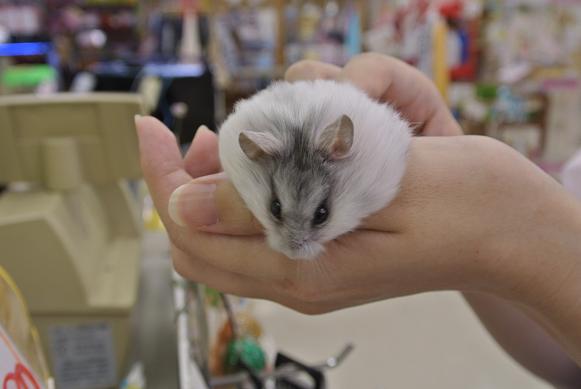 こんばんわ 店長です あれですね・・・「羽アリ」が大量発生した翌日って 『雨』が降るんですねっ面白いモンです ただ、ちょうど去年もこんなカンジに発生し、「羽アリ撤去掃除」するのが大変だったのを覚えています。 それにしても~ 雨が降ってくれることで なから涼しくなり過ごしやすくなるので良いんですけど・・ 「ゲリラ豪雨」はひどいっ! 洗濯物がビショビショに 残念です。 では本題へ。 おそらくなんですが!他店舗では取り扱っていない「ハムスター」のご紹介です。 『パンダキャンベルハムスター』 本来「キャンベル種」って気が強めで、馴らすのがなかなか大変なのですが そこは「流山店ブーム」の『揉み』を駆使し、ある程度馴れてまいりました!!! 「揉み担当」は、Mさんです。 !! ちなみに当店で産まれたコ達で、同じキョウダイなのに 色がちがうんですよぉ~~っ そこが『キャンベル種』の面白みでもあるんですよね~~~ で、ちょっと早めに親から離し、『揉み作業』に入った結果、馴れてきました ってことは、べびーのうちに「揉む」ことができれば 結構イ~感じで馴らせることに ということで、『パンダキャンベルハムスター』がいるお店は『流山店』だけですので ぜひご来店くださいませーーっ! 最後! これまた『レア商品』が来たので もう何年も前から存在しつつも・・・メーカーさんではすでに「廃盤商品」! 「ワンニャンクール扇風機」 見て分かるように 「扇風機」と「霧吹き」の一体型スプレー 暑い日差しの中のお散歩・・屋外での野球観戦・・・公園、広場でのくつろぎタイム・・ などなど、ペットに関係なく使えるアイテムでゴザイマス。 試しに使ったらーーーーー、超つかえるアイテムでした ¥1260の品 在庫限り!!!!! ¥298!!にて そんなに たくさんあるわけではないので お早めにドーゾ 店長でした