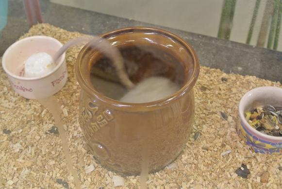 こんにちわっ 店長です 昨日お休みをいただきましたが、生憎の「雨」 最近・・休みの日に「」続き・・ こうなってくると、ワタクシもムキになる性質(たち)ですので! 室内で楽しめることさがしてやろうと思っています まぁ、気分転換いうことで今回はお部屋の片付けなんぞやってみました これはこれで・・面白かった ただ・・誘惑が 「マンガ本」やら「雑誌」やらがワタクシの行く手を遮り・・時間だけが持っていかれました 次やるときは気をつけよっとね。 では 本題。 先日、本社事務の「Y」さんこと 「ヒヨコ姫」(ワタクシが勝手に呼んでいるだけですが)より 珍しく営業がかかり・・ ちょっと面白そうなので入れてみました ・・・・・・ ・・・・・・・・・・・ ・・・・・・・・・・・・・『壷』?? 今日来たらこの様な状況に ん!!! ナンカイマスネェ・・~~ ワタクシお得意の「突っつき」にも応えることなく 丸まってます なので・・・ 次の技!「引っ張り出し」を使ってみました ややご立腹モードですが ワタクシ、お構い無しです だって、皆さんに見て欲しいので もう お分かりですよねっ 『ファンシーラット』でございます とってもとっても良く馴れて! 大きめのカラダで存在感たっぷりでーす 飼われているほとんどの方が やっていただける・・「肩のり」 一度やるとぉ~~ヤミツキに そんなステキな 「ファンシーラット」さん!! !!??あっ!! トットと『壷』に戻り・・・ とぼけ顔・・・・ まっ・・まぁ~良いんですけどねっ そうっ!それで そんな世間から目を背け、つぶらな瞳で 男性を狙う「レディラット」! 気になるお値段は なりっっっ!!!!! そして更にッッッ!!! 今月お迎えしていただいた方に もれなく!! 『壷』付き 結構年式ある「壷」でございます 提供元は・・・美上司より です スゴイサービスですねっ 「壷」ともども・・ いかがでしょうか???? コメントいただきました 「じゅりあ」さま 経過報告ありがとうござます ただ、続いてかぁ・・ってカンジも しなくは無く なんとか状態上がって欲しいもんです 落ち着いてきたら是非一緒にお店に来れると嬉しいです なので、がんばりましょっ ねっ!! 「チョッパー」さま 「ヒナ」たちの成長も楽しみなんですが 個人的に・・コメントにある「夫婦」の子育ての雰囲気が好きです そろそろ~カラー分かりそうですかねっ?? それも 楽しみなので!写真撮れたら、よろしくお願いします 「みやっち」さま コメントありがとうございます!! 今回の『3羽』は11日に選んで連れて来ました 結構迷いましたけど、絶対可愛いってコ達なので 見に来て下さいませっ ちなみに、ワタクシ好みの「ドワーフ」が1羽いるので 当てたら・・すごいですっ 店長でした