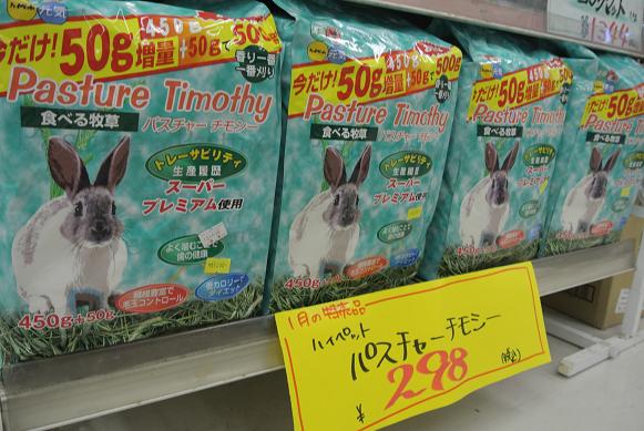 毎年のことですが 1~3日まで店内の有線が『琴の音』に・・ 音楽聴くのは嫌いではありません!がしかし!! さすがに一日聴いていると・・睡魔と雰囲気にのまれ・・床でゴロンになりそうです がんばれっ!自分 では早速特売品ですが お正月特売ということで うさぎの『やわらか~』シリーズ 通常3ケだと¥1000相当のものが 1パック(3個いり)で ¥500 ハムスターの『おててにもって~』シリーズ 同じく3個入りで ¥500 超安いッス!お年玉でいかかでしょうか?? 続いて1月の月間特売品ですよー ウサギさん用『消臭砂』 通常¥880の品 ¥698にて 『パスチャーチモシー』通常¥498の品 久々の特価ですが ¥298にて 『かまくらハウス M』通常¥1470の品 ¥980にて 『かまくらハウス(ちょい大きい方)』通常¥2640の品 ¥1880にて まだまだありまーすー ハムちゃん用の回し車 『サイレントホイール』 12cm ¥661の品 ¥578にて 15cm ¥735の品 ¥598にて 17cm ¥837の品 ¥698にて 21cm ¥1664の品 ¥1580にて ちょっと・・疲れてきましたが・・・もう1点 『バードフード徳用(皮付き・皮むき』通常¥735の品 ¥598にて この他にもまだまだ特売品がた~っくさんありますので随時お知らせしていきますので ぜひチェックしてくださいね~~ 店内、ゆ~~~~っくりモード全開 なんだか・・「餅」が食べたいです モチもちの「餅」 本日は19時までですのでよろしくお願いしまーす 店長でした