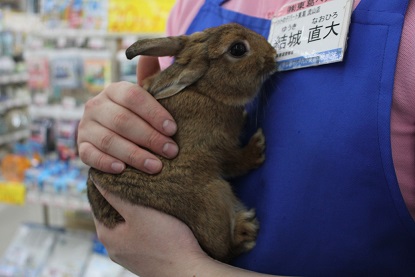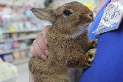 皆さん こんにちわ~ 暑い!!夏ですね! こんな天気の休みの日は家のお風呂に水を張り、ゴーグルかけて 疑似プールに入って一人ではしゃいでいる結城です。 今日は結城お気に入りのウサギをご紹介します。 コイツです!! 触れ合いコーナーにいるネザーランドくん 人が来ると寄ってきて触ってアピールしてきます。 なのにいざ触ろうとすると目大きくして一気に緊張感マックスの 顔になります さらに 抱っこできます!! 無理やりやってできる!と言っているのではなく本当に嫌がったりせずに おとなしく抱っこさせてくれます! 体も小さくネザーランドとしては最高だと思います 本当に可愛いのでウサギを飼うのをお考えの方! この子ベリーおススメですヨ 最後に・・・ 今日のブログの写真を見て思いましたが 私の胸。。。デカ過ぎじゃね!? 以上! 改めて痩せようと思った結城でした。 お知らせ 不定期で開催されます 「ウサギとケージを一緒にご購入すると5.000円引き」 キャンペーンを只今、絶賛開催中です!! *対象外のウサギもおります とってもお買い得なこの機会に是非、 当店の可愛いウサギをご家族に迎えてみてはいかがですか??