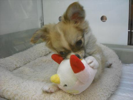 こんにちは松っあんです 12月デスネー!2014年も残りわずか・・・ 皆さんやり残した事はないですか? 松っあんは毎年、ちょっとした目標をたててますが今年は 「コーヒーが飲めるよーになるっ!」 もうすぐ三十路のくせにコーヒーも飲めなかったのですが 朝、1杯のコーヒーがようやく美味しく感じれるようになりました!(眼モ覚メルシネッ!) まだ砂糖とミルクはちょい多めですがいつか濃いーブラックが飲めるように、 そしてス〇バで初めてココア以外の注文をかっこよく言えるように頑張るぞっ さて、先月までやってました「ニャンコフェア」も終り 何匹かのにゃんこたちが新しい家族のもとに巣立ちました 12月になりましたので何匹かのにゃんこたちは明日元の店舗へ。。。 柏店からお借りしました。ノルウェージャンの男の子。 とぉーっても甘えんぼですぐ飛びついてきてくれてお別れしたくないです なので今日たっぷり一緒に遊んでもらおうと思います。 勝田台店からお借りしました。アメショー男の子、通称:キラ ヨシカゲ このコも甘ったれでそしてすぐ脱走しすぐ捕まる天然さんでした!笑 いつも気持ちよさげに爆睡している姿にコノヤローと思っていた事はココだけの話にしておきます。 上尾店からお借りしました。スコティッシュフォールドのドラちゃん。 。。。このまま残るっぽいです。 他にも 超絶甘ったれアメショーのレッドダビーくんや キュン死にカメラ目線のノルウェージャンのミルクティーは残りますので宜しくどーぞです! さて、長くなりましたが本題はココから! 先日当店の抜刀斎様からパスを受けましたチワワさん。 棚変えなどの理由でブログお休みしてましたが いい加減紹介しないとそろそろ斬られそうなので今日はたっっっぷりお見せしちゃいます! 遠めから撮影。笑ってマスヨー 近付くと大興奮シッポはちぎれるぐらいブンブンです。 舐めて出してアピール。あぁ、せっかく拭いた窓が。。。 どんなに激しくだだをこねてもカメラ目線すばらしいですね 今度はおもちゃで 遊ぼ~ こんなことされるとチワワ好きの松っあん弱いです。出しましょー 手のひらサイズのチワワの男の子。(H26.9.27生) 愛想がいいので犬舎デビューしてから人気上昇中です! かわいいーって言われるとテンションがさらに上がるのでたくさん言ってあげてください。 ちょうど歯がかゆい時期なので甘噛みが痛いですが遊ぶの大好き! おさわりOKなので気になる方はスタッフまでっ