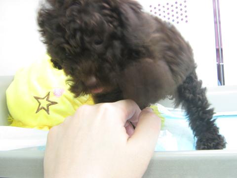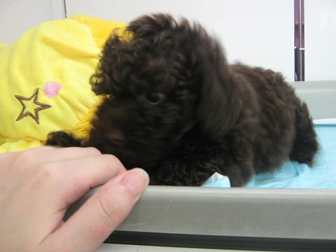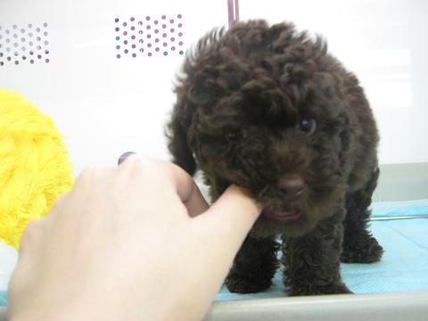 こんにちは、バイトのMです。 例によって例の如く、店長指令で『はっちゃけて』と無茶振りされているので、そんな感じでお送りします。 (とても面倒くさい指令です ´・3・) 紹介するのは先日の毛玉・・・ではなく、プードルちゃん! まあ、お昼寝の時間ですよね´・v・ ライオンさんを枕に、すやり。。。 しるばさん(仮)が上で鳴いていてもお構いなし。 ぐっすりです。寝る子は育つ。 しかしそこをお邪魔するのが今日の私の仕事で御座います`・-・ いざ、もこもこパラダイスへ! (鍵を開ける音で起きちゃった訳ですが) この手が!この手が安眠を妨害したんだ!(`・ω・´∪) こうして!(∪`・口・)ノシ こうして!(∪>~<) こうだ!(∪`・皿・)参ったか! どやぁ!(`・▽・´∪)ノシ 人見知りしなくて、誰にでもこんな感じです。 4月24日生まれの女の子になります^^ 遊んでもらうのも大好きなので、歩けば付いてきたりしますよ ちなみに名前はブラウニーさん(仮) 是非一度、抱っこしにご来店ください^^ くらら(仮)とエルメス(仮)も待ってます!
