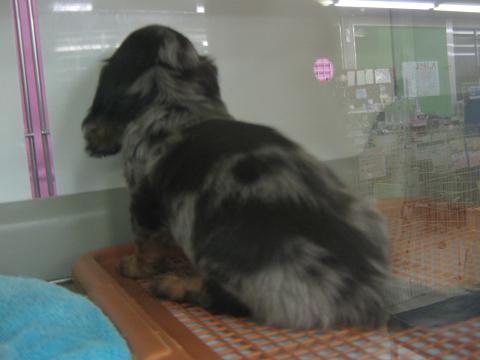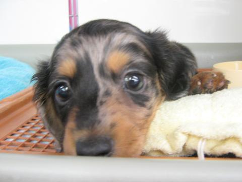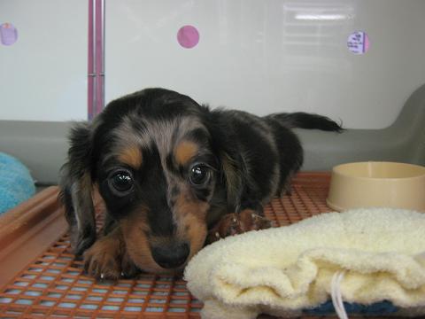 こんばんは、バイトのMです。 タイトルで期待された方は申し訳ないですが。。。 本日も犬の紹介です。 あ、鳥・小動物も可愛い子は沢山居るのですよ。 ファンシーラットは2匹お家が決まりまして、残り男の子2匹になります。 ではでは、早速。 扉の向こうに誰か居ると信じて待つ忠犬「しる公(仮)」。 そっちは今誰も居ないのよ。 反対側で写真撮ってる事に気付きました。 何かを訴える目ですが、ご飯はさっき食べましたよ「しる公(仮)」。 おもちゃでガマンすることにしたみたいです。 もう、お気付きでしょうか。 ミニチュアダックス(ロング) シルバーダップルというカラーの男の子です。 シルバーダップル しる公(仮)。 しるばにあ★ふぁみりー ※家族募集中!!! お顔の模様が不思議ですが、なかなかイケメンだと思われます。 多分、多頭飼いで賑やかな所よりも、ひとりでのんびり甘えたいタイプ。 最初はちょっぴり臆病ですが、すぐに甘えん坊になります。 しるばにあ★ふぁみりー ※しつこいようですが家族募集中です。 ふぁみりーにしてあげて下さいませ。 (本日は「大人しい感じで」という店長指令の元ブログ更新いたしました`・ω・ノシ) (店長は本日お休みです。髪を切りに行くと言っていた筈なので、明日の店長は一味違う!!! かも?) (わんちゃんと店長が気になる方は流山店へ!!^▽^)