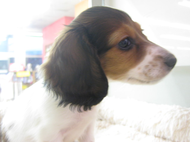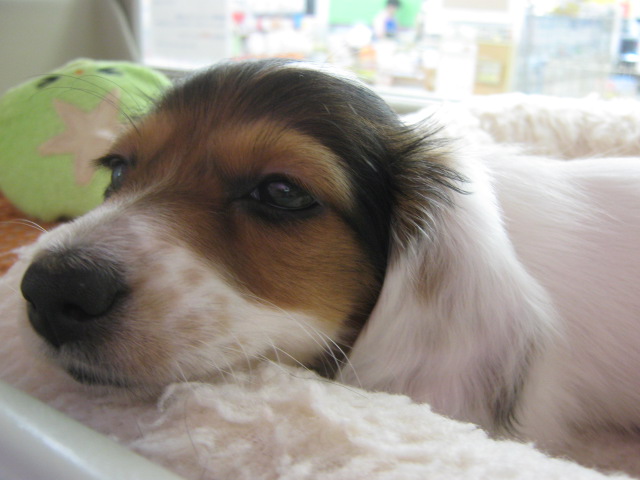 こんばんは、バイトのMです。 もうお店も閉める時間なので、前置き無しでサクッと新入りわんちゃん紹介します!! じゃん! まずは恒例の寝顔写真から。 可愛いですねー。 鋭い方はこの写真で今日のネタが丸分かりですねー。 眠そうなだっちゃんに、ちょっくら起きて頂き… ほらほら、あそびましょー。 かなり甘えん坊で、人に構ってもらうのも大好きです。 反対向きー・・・ ……おや?? おやおや??? もう、お気付きでしょうか… そう、右と左の、耳の色が全然違うんです。 そもそもちょっと珍しいカラー・・・こんなダックスも居るんですね・・・ 背中にも茶色の模様が・・・ ロングコートなので、この辺の模様は将来的にちょっと変わるかも知れません。 7/13生まれの女の子。 お値段 なんと・・・!!!! 大人の事情により、他のダックスより少しお安くなっております。 気になる方は、お早めに流山店まで!!!