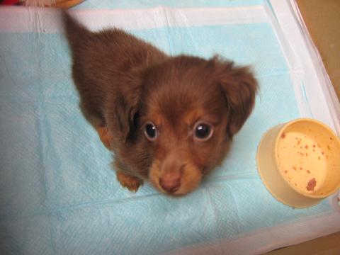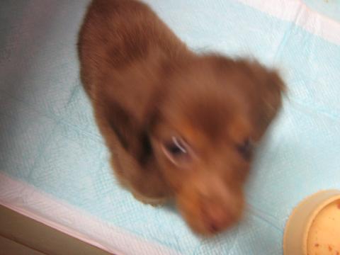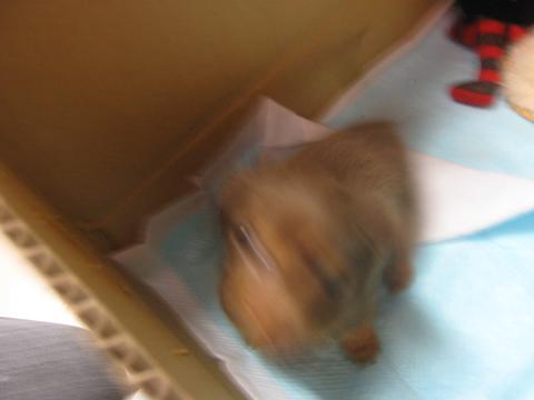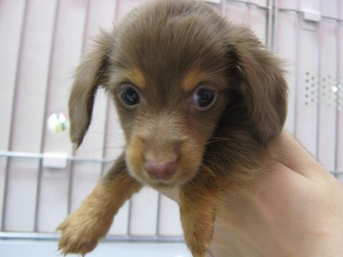 こんにちは、バイトのMです。 今日はヒドイ雨ですね。雷が鳴るとPC付けるの怖いです(((・-・`)))ブルブル 実家の犬は雷に向かって吠えるので、きっと大変な事になってるんだろうなぁ・・・ まあいいか。 店長お気に入りチーちゃんの隣。 もうひとつダンボールハウスがあります。 ここには、 Mの 大好きな あのコが 居ます。 元気一杯。 カニンヘンダックスの男の子です。6月22日生まれ。 もう、お分かりでしょうか キレイなチョコタンカラーなのです。 お鼻が赤いのはご愛嬌。 まだまだ片手で抱っこできるサイズです。 ダンボール生活なので、見たい方はスタッフに声をかけて下さい^^ ダンボラットの黒いコ、みくちゃん(仮)のお家が決まり、週末にお迎え頂きました。 有難う御座います。お見送り出来なかったのがちょっぴり寂しいです(´・v・) ベージュのりんちゃん(仮)れんくん(仮)は、まだお店に居るので、気になる方はお早めに!!