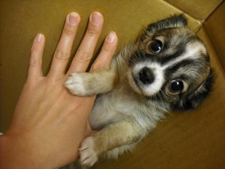 こんにちは松っあんです 昨日は流山店のスタッフのみんなでお好み焼きに行ってきましたー お店のご近所さんでいつもネコちゃんのフードを買いに来てくださるご家族様のお店でして 夜遅くまでご親切に対応して頂きました! とっても美味しかったです そして!新店長様のおごり ゴチソウサマでした 今月もみんなで頑張りましょー どうせなら作っている写真も。 こちらもんじゃ焼き。 このもんじゃだったか次に作ったもんじゃだったか忘れましたが この後大変な事が起きメガ進化してY先輩に食べられた事はココだけの話です。 さて、前回ご紹介しました こちらのかまってちーちゃん。お家が決まりましたよー ちわわ好きの松っあんにはちょっと寂しいですが 新しい家族が決まったのは嬉しいことですね そんなこと言っている間に突然来ました。 二代目 Chihuahua Brother’s 犬舎空き待ちなのでダンボール生活中。。。 とりあえずお耳。 っお!人影に気付いたかな? 覗いてみましょー はい。こんちわわー笑 チワワの男の子。(H26.10.9生) ムチムチの短足さんです。 まだちょっとビビリですがスイッチが入るとハイテンション 隅の方に追い込むと タッチ! からの~ 今女子高校生の間で話題の壁ドン?笑 すみません。ちょっと遊んでみました 全体の模様は こんな感じ。リスみたいな縦模様が入ってます。 たぶん大きくなるとだんだん消えていくと思いますが。。。 (松っあんの愛犬もそうだったんで。。。) 大きさ的にはちょっと大き目のおもちゃと同じくらいの まだまだ手のひらサイズです。 もうしばらくダンボール生活になりますが 犬舎窓に写真を貼ってあるので気になる方はスタッフ~まで