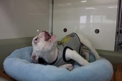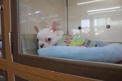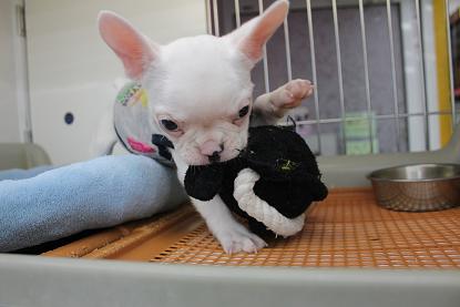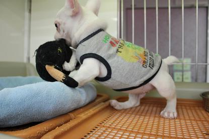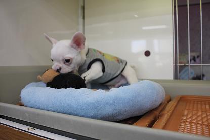 こんにちは松っあんです 今日のお昼は大好物チンジャオロース ちょー手抜きにより白いごはんの上にたっぷり乗せてきました。 私の作るチンジャオは90%がピーマン それぐらいピーマンが大好きなんです! いつか私も。。。 ピーマン食べ過ぎてこんな風にみどりになってしまうんだろーか。。。 なぁ~んて冗談はこのぐらいにして、 今日の主役はこのコ! 寝てるかな? ちらっ あ~そび~ましょっ おーぷん ざ どあ~ 昨日二和店よりやって来ました。 フレンチブルドッグの男の子(H27.9.10生) 流山店では久しぶりの入舎です! カラーはキレイなクリーム色。 お鼻の模様がとってもプリチー 性格はとにかく明るく、そしてかまってちゃん! 他のコと遊んでると「ボクもっ!」と一丁前に鳴きます お腹はもちろん夢と希望でパンパン 今にも破裂しそうです。笑 松っあんのお気に入りはお口のブヨブヨをのばーすこと こんな事しても決して嫌がりません。 ぶぅ~ちゃんのお腹と似たようなおもちゃで一人上手に遊びます 楽しそうでなにより笑 お値段はちょっと張りますが ブルちゃん好きの方には納得のお値段だと思います。 ぜひ見に来てくださーい 最後に 首だけぶぅ~ちゃん