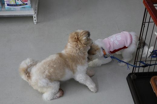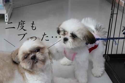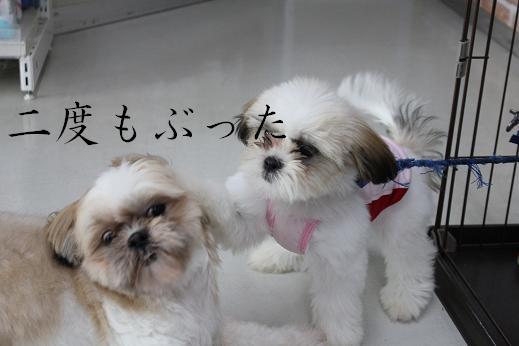 “ムスメ”のリアル親父です。 名前はジムニー。 先日、親父の方もおシャンプーしたので、 親子の戯れをさせてみました。 楽しそうです。 楽しそうです。 楽しそうです。 そんなこんなしていたら、撮れた1枚。 。。。 。。。 。。。。。。。 改名。 “オヤジニモナグラレタコトナイノニー” orz それではさようなら。。。