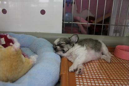 こんにちは 大変ご無沙汰ぶりの松っあんです いつもぬんたも氏に犬猫ブログをまかせっきりで申し訳ないので 久しぶりに更新させていただきます! 先日ご紹介ありました、 こちらのちびチーちゃん 本日めでたく犬舎デビューしましたぁ~ 最初は固まっていたチーちゃんですが・・・ 天使の寝顔み~っけ だいぶ馴れてお昼ねタイム! っと思ったらシャッター音で起床 アホ毛ボサボサですけどー!笑 来た当初はとなりのハムスターのぬいぐるみと同じ大きさぐらいでしたが いっぱい食べてよく寝てるので順調に成長しています すぐにひっくり返ってお腹を見せてくるとっても甘ったれさん。 そんなことされたらチワワを愛して止まない松っあん、 お迎えしてしまいそうです笑 まだまだおねむみたいですね どんどん食べていっぱい寝て立派なチワワになってね そんなまだちびちびチーちゃん、 もちろんおさわりできますので気になる方はスタッフまで 最後に、昨日新しいお家にお迎えになったコたちのご紹介! 顔の右半分がパパにクリソツ!笑 シーズーのムスコソー(仮名) S様、お迎えありがとうございます! たくさん可愛がってあげてください アメショーのイケメン男子。 このコは松っあんのお知り合いの方がお迎えしてくださいました! 名前はダニエルに決まったそうです O様、1時間かけて何度もお越しいただきありがとうございます! 今度お家に遊びに行きますねー 今日も新しいちびっこがやってくる予感・・・ お楽しみにっ おまけ~ しばいぬのしろくま氏(仮名) ・おすわり 120% ・待て だいたい30%ほど できるようになりましたー やったね! 今度はお手を頑張ろうね