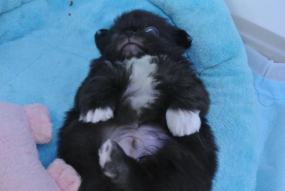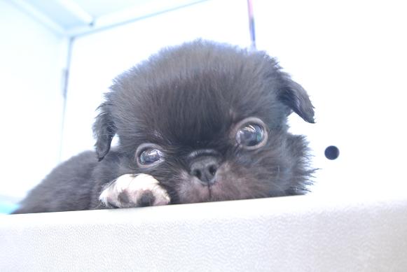 こんにちわ 店長です 昨日は午前中会議でしたが、午後お休みをいただき ちょっと気分転換にお買い物 CDやらピアスやら、ステッカー。 ステッカーは洗濯機の「ヤマダ」さんのデコ用にじ~~っくり選んできました お客様の目には ふれることがないんですがねっ・・個人的な楽しみのために さらに思い立ったら即ってカンジで 「ハニー」さんのオイル交換。 「ひとつひとつに思い入れを込めていくことが大事よっ」って美上司が仰っていましたので 公私ともにやってみようと 何気に充実したお休みでした さて今日はお天気もよろしかったので やってみました!! お外でシャンプー ビチョビチョ Mさんと二人がかりで どうにかこうにか・・ 「コーちゃん」的に満足していただけたと 信じているんですが・・ 体大きめのコは 外でシャンプーするしかないのですが 季節限定ってカンジですかねっ?? また来月でもやろっかな~~ では本題で!! 今朝ものすっごい楽しみにお店に来てみまし たら・・ さすがっ期待を裏切らない『コ』が転がっていました~~~ 『ペキニーズ』 胸元の白、手足のソックス・・寝転がったら起き上がれず、結局泣く始末。 どこを とってもワタクシの「ドツボ」でございました! かわい~ぃんですけどーーーー 日中はこのように「ベッド」の下でカクレンボ トビラを開けると必死に向かってくるんですが・・・これまた・・たまらんのです 大きさはこんなカンジです! 両手に収まるサイズ でもでもでも!!!! 元気いっぱい テンション高く ちょ~っかわいいです ワタクシ まさにひとめ惚れってやつでしたね そんな魅力的な 『ペキニーズ』 「ぺーやん」って呼んでますが カラーは「ブラック」 H25 4月6日生まれの 男の子 気になるお値段は ¥168000にて みなさま!いかがでしょうか?? はぁ~~ 新たな遊び相手ができました・・ 店長でした