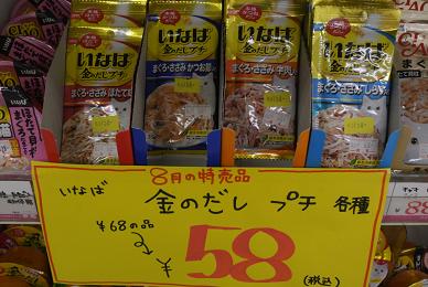 こんにちわ 店長です 昨日お休みをもらい「愛車ハニーさん」を『洗車』してまいりました 陽射しが強く・・汗だらだら でしたが・・ん~~なんでしょう??この充実感 家に戻り車内を ちょこちょこ掃除し、エンジンルーム(よく分からないのですが・・)を眺めていると 同アパートの住人さんが帰宅され・・ひょんなことから盛り上がってしまい、その方のイジリまくっている「車」で 近くをドライブに行くことに!! 正直、そんなに仲良くさせてもらっているわけではなかったので、内心ドキドキでしたが・・ その方、車がとっても好きなんでしょうねぇ~~ パーツのことやら、いじり方、どういった乗り心地に持っていくか・・などなど いろいろ教えてくださいました 専門用語が飛びまくっていて ちんぷんかんぷん でしたが、「ハニーさん」のいじるポイントを いくつか言っていただけたので今後の参考にしようかと。 好きなことが共通すると、こうもアッサリ仲良くなれるということを学んだ休日でした さて、つたない日記はココまでで 本題へ。 毎月恒例の特売品です 『わんにゃん クール用品』 全品通常価格より20%引き 暑い時期はまだまだ続きます・・・。 お安いときに揃えて損は無いかと!! 『夏もの ベッド』 全品 定価より 30%引き dbf 『デビィ 各種』 わんちゃん用缶詰 通常¥134の品 ¥118にて 猫砂 『オシッコのあとに香る砂』 通常¥598の品 ¥398にて 今の時期「オシッコ」のニオイは、誰もが気になるところ!! ゼヒ!使ってみて!!! いなば 『ちゅ~る』 わんちゃんのレトルトタイプのおやつでーす。 暑い時期って人でも食欲が落ちますよね?? わんちゃんも 落ちるんです。 なので、食欲あげつつ おいしく水分補給。 通常¥198の品 ¥158にて 森乳 『マルチファンクションフード 1.7kg』 キャットフードですね。 腸の中から栄養を摂りましょう!!がコンセプトのフードです。 通常¥1980の品 ¥1880にて いなば 『金のだし プチ』 通常¥68の品 ¥58にて 最後!! 新たにわんちゃんがやってまいりましたぁ~~ 『カニンヘンダックス』 超ちびっこいので~~すっ!! 詳細は後日。 お楽しみにぃッ 店長でした