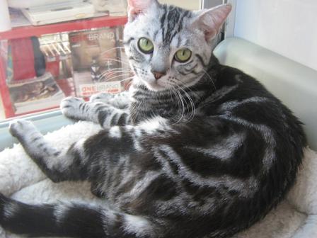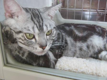 こんにちは松っあんです 今日は柏祭りだそうですね 思い出すなぁ~高校時代。 某強豪吹奏楽部にてトランペットと三味線を担当していたわたし。 柏祭りといったら1日目はパレード。2日目はバスターミナルの野外ステージで演奏会。 今思うとよくこの炎天下のなか楽器を吹いたり、踊ったり、歌ったり。。。 あの頃の頑張ってた自分を褒め称えたいと思います。 だからと言って今頑張っていない訳ではありません。 秋に某魔法映画の国に行く為に頑張って貯金してます! 話は変わり本題へ。 以前主任から松っあんかMさんに強制的にいいえ、 親切にブログのネタを譲っていただいたので今日はそちらの紹介。 (ちなみにMさんは即答でお断りしたみたいです。。。) 寝相が悪いのか大胆に犬舎からはみ出した足。 アメリカンショートヘアの男の子(H25,6,15) 先月めでたく1歳を迎えたみたいです。 性格はマイペースな優しいヤツです。 犬舎からはみ出してる足を突然つかんでも絶対に怒りません。 そして常に。。。 ダラ~ッと グゥ~タラしてます。 暑い中汗だくになりながら品出ししてる最中に見るとムカツク光景です。 そんなヘンタイ寝相「ポムヲ」のお値段。。。お店にて 次回予告。 さっき来たばかりの新入りわんこさん。 何の種類でしょうか? さぁ~みんなで考えよう! 正解は次回こそMさんに! おまけ 実習生の若いおねーちゃんにシャンプーしてもらってご満悦の「ジムニー・A・プスソー」 気のせいかいつもよりシャンプー中も大人しかったような。。。 若いおねーちゃん好きのジムニーでした