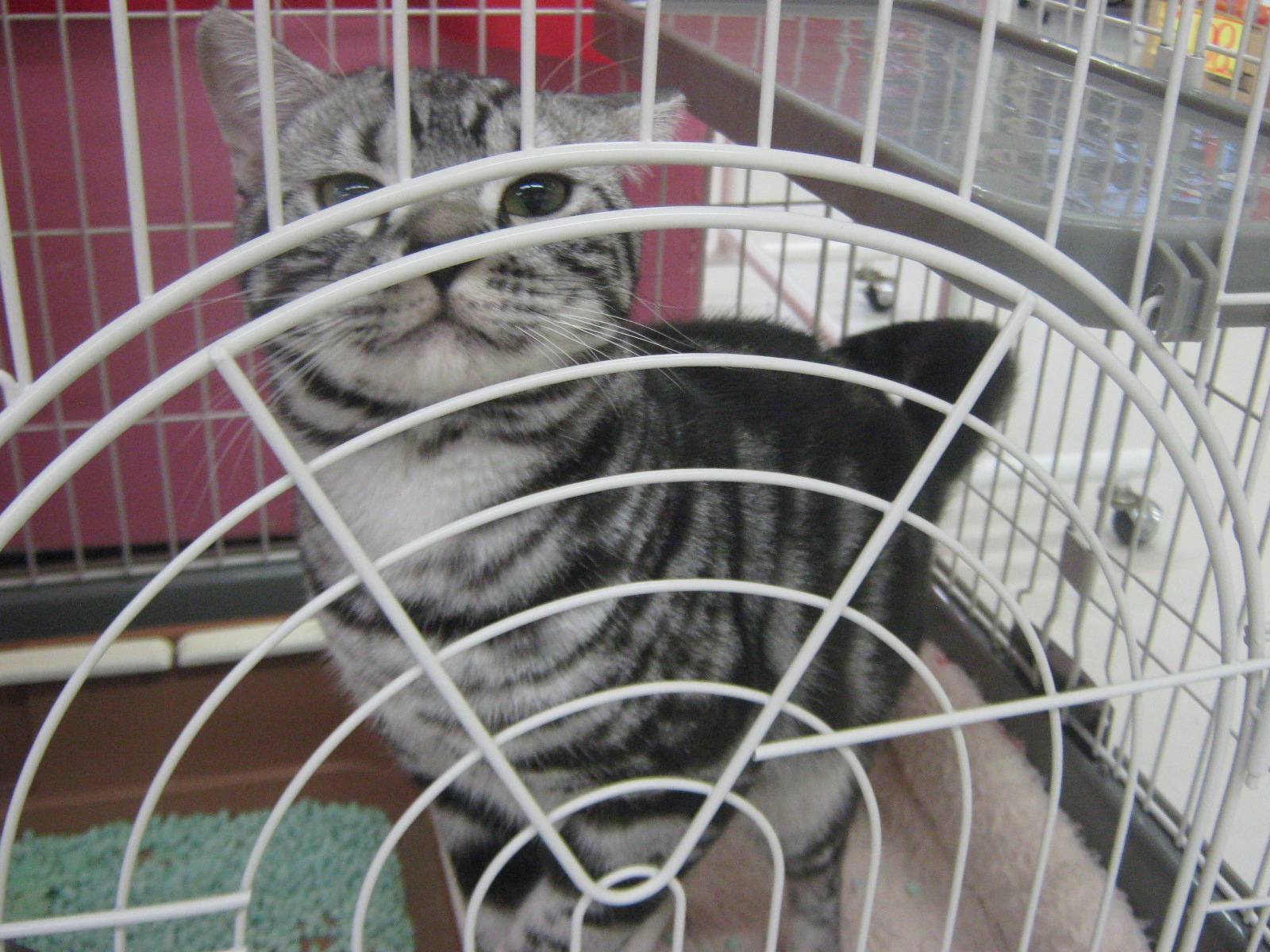 こんにちは松っあんです 12月デスネー!2014年も残りわずか・・・ 皆さんやり残した事はないですか? 松っあんは毎年、ちょっとした目標をたててますが今年は 「コーヒーが飲めるよーになるっ!」 もうすぐ三十路のくせにコーヒーも飲めなかったのですが 朝、1杯のコーヒーがようやく美味しく感じれるようになりました!(眼モ覚メルシネッ!) まだ砂糖とミルクはちょい多めですがいつか濃いーブラックが飲めるように、 そしてス〇バで初めてココア以外の注文をかっこよく言えるように頑張るぞっ さて、先月までやってました「ニャンコフェア」も終り 何匹かのにゃんこたちが新しい家族のもとに巣立ちました 12月になりましたので何匹かのにゃんこたちは明日元の店舗へ。。。 柏店からお借りしました。ノルウェージャンの男の子。 とぉーっても甘えんぼですぐ飛びついてきてくれてお別れしたくないです なので今日たっぷり一緒に遊んでもらおうと思います。 勝田台店からお借りしました。アメショー男の子、通称:キラ ヨシカゲ このコも甘ったれでそしてすぐ脱走しすぐ捕まる天然さんでした!笑 いつも気持ちよさげに爆睡している姿にコノヤローと思っていた事はココだけの話にしておきます。 上尾店からお借りしました。スコティッシュフォールドのドラちゃん。 。。。このまま残るっぽいです。 他にも 超絶甘ったれアメショーのレッドダビーくんや キュン死にカメラ目線のノルウェージャンのミルクティーは残りますので宜しくどーぞです! さて、長くなりましたが本題はココから! 先日当店の抜刀斎様からパスを受けましたチワワさん。 棚変えなどの理由でブログお休みしてましたが いい加減紹介しないとそろそろ斬られそうなので今日はたっっっぷりお見せしちゃいます! 遠めから撮影。笑ってマスヨー 近付くと大興奮シッポはちぎれるぐらいブンブンです。 舐めて出してアピール。あぁ、せっかく拭いた窓が。。。 どんなに激しくだだをこねてもカメラ目線すばらしいですね 今度はおもちゃで 遊ぼ~ こんなことされるとチワワ好きの松っあん弱いです。出しましょー 手のひらサイズのチワワの男の子。(H26.9.27生) 愛想がいいので犬舎デビューしてから人気上昇中です! かわいいーって言われるとテンションがさらに上がるのでたくさん言ってあげてください。 ちょうど歯がかゆい時期なので甘噛みが痛いですが遊ぶの大好き! おさわりOKなので気になる方はスタッフまでっ
