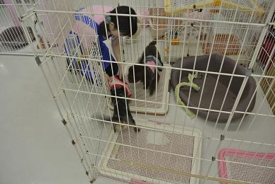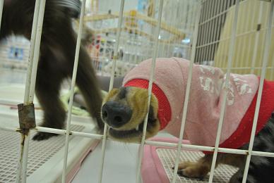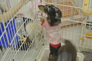 こんにちわ 店長です 連休も中日ということで、ゆったりモードでございます。。。 そんな中、なんだかなぁ風景を目撃!! ということで、今日は商売っ気ナシで更新。 。 。 店内中央の「わんこサークルコーナー」。 プードル&ダックスが占拠しているわけですが 「ブラウニー」さん。 毛が伸びてもっさりすると改名され・・・『バッファロー』に。 ・・・!! その・・とな・・りの・・・ピンクのカタマリがぁ・・・・・ なにやら~おかしいですよねぇ~~~明らかに。。。。。 はっ!! 意味不明な「着方」をしているのは== 『ダックス』の「シルバ」さん。 ビミョウに見えているんでしょうねぇ~ コッチ向いて 笑ってます 。。。。。 そんな状況知ってか知らぬか・・・ブラウニーさん はしゃぎまくり 踏まれても耐えるシルバさん!! おっと! 救世主 松っあんが登場。 うんうん。。 それジャマする「ジムニー(シーズ)」とブラウニー。。。。。 おおぉ・・・ 視界スッキリ!だよね?? 感謝の気持ちいっぱいの「シルバ」さん!!! 全身で喜びを表現しておりますよっ そんなちょっぴり おマヌケ天然 『ミニチュアダックス』の「シルバ」さん。 H25 3月28日生まれ 男の子 カラーは「シルバーダップル」でーすっ!! 甘ったれさんなので「可愛がりすぎ」に要注意!!! その相方(??) 『トイ・プードル』の「ブラウニー」さん。 H25 4月24日生まれ 女の子 カラーは「ブラウン」でーーすっ!! 人が大好きでノーリードでも、、、ついてきてくれます 個人的に、ちょっと好きっ ふふっ たまーにレジ番のお手伝いしていますよーー。 大事なお知らせです ⇒臨時休業のお知らせ (上の文字をクリックしてねっ) 一日1枚写真、増やしてます。 よかったら見て。ね。。 個人的に気に入っている写真でーす。 拍手、ありがとうございます!! とってもうれしいんですよー。。。 気に入っていただけたら「拍手」よろしくお願いします。 一回しか入れられませんが。。そんなときは「よかった」のコメントでも よろしいので。。。ねっ ランキング参加してます みなさまのご協力「ぽち」をよろしくお願いいたします おかげさまで、ランキング上位に!! ありがとうございます 引き続きよろしくお願いしまーーす!! 最近ですが「ブログみてますよー」と言っていただけることがあり ほんっとに嬉しい限りですっ!!! 反応をいただけることで、次を考えるきっかけとなってます!! 何かご要望等ありましたら、遠慮なく言ってくださいねっ 店長でした