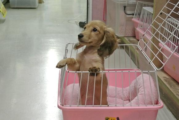 あぁ~よかったー!雪つもらなくってそうなってくると気持ちに余裕が出てきて民家の植木にパラパラと降る「雪」を眺めて「はぁー・・風流だなぁ~これぞっ日本」なんて思っちゃたりして いい加減なもんですねっさて!わんちゃんのお世話・お掃除しているときに「キャリー」に移すのですがワタクシ、いっつも思っていたことがあり・・いつか撮ってやる!と思い本日決行。 それは・・・・なぜか??「ダックス」だけが「立ち座り」するんですそして、これまたなぜか出てこないというか!出られないっぽいそこがまた かわい~んですけどクリームのコは何故かおすまし顔意味がワカリマセンちなみに「ブラックタン」のコは表にケージデビューして気軽に触れますよー続いて本題。2月、にゃんこ月ということで Mさんに張り切っていただき特売コーナーを作ってもらいお買い得品をご用意いたしました!「ねこじゃらし」をかな~~り・・ご~~っそり!そろえてみましたよぉーーっ通常¥350~650のものを¥198~498という大特価で(ザックリ紹介ですみませんが)あと!背伸びしてツメトギするネコちゃんにオススメ!長さ90cmある『ロ~ング爪トギ』通常¥5250品が数量限定¥2980にていかがでしょうか??店長でした