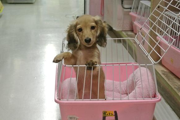 こんにちは、バイトのMです。今日は雨でテンション上がりませんね…靴の中が濡れるので家に居たいです。そろそろ新しい靴を探そうかなぁ…こんな日でもお店のわんちゃん、ねこちゃんは元気です`・ω・ちくわさんもサークルを駆け回ってます。そんな中、紹介するのはこちら。(´・ω・)ショボンちがうんです、私のカメラが下手なんじゃなくてですね(ごにょごにょ)お察しの通り猫さんなのですが、種類、分かりますか?正解は、スコティッシュちゃんです!アメショだと思った方がいたはず・・・(・`v・)ドヤァ模様はアメショちゃんみたいなスコちゃんが来ました!ちゃんとお耳が垂れてるでしょう?このコは甘えん坊で、誰にでもすり寄って来るかわいいコなんです>v<命名、こんにゃく。多分、松っちゃんが付けたんです。おでんで愉快な仲間達のひとりです。ごろにゃん♪それから、こんなコも^^このコはカニンヘンダックスちゃん。ミニチュアに比べ、小振りな種類ですね。すらっとした美人さんです。美人さんですが、命名ごぼう。主任が「ごぼうみたい」って言うので…少し人見知り・・・というか、犬見知りをするので、既におうちにわんちゃんの居るご家庭よりは、初めて飼われる方のほうが相性は良いかも知れないです。遊んでもらうのは好きなので、飼い主さんにはベタベタに甘えるようになります^^どなたでも触れますので、一度遊びに来てみてください