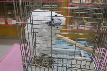 こんにちは松っあんです 今日は待ちに待ってやってきた『兄貴』をご紹介します。 勝田台店から限定出張してきました。 タイハクオウムの『ハクちゃん』です! 4月で4歳の男の子。 「コンニチハー」とか「ハクチャーン」っとおしゃべりがお上手です。 カメラ写りもバッチリ 背中や お腹を触るとふわぁ~っとふくらみます。 決して噛んだりしないとってもイイコです。 元の店舗に帰る前に「ミカン」「ドンブラコッ」など 知る人ぞ知るいろんな言葉、名言を覚えさせたいですね!笑