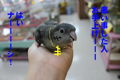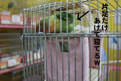 こんにちは松っあんです パソコンがある場所に日が強く当たります。 ブラインドーを下ろしたくても紐がコードに絡まって下りません。 窓に日よけとして付けた布も触ると燃えるぐらい暑いです。 体左半分黒こげになりそーです。タスケテクダサイ。。。 そんな無性にハロハロが食べたい人は置いといて、 今日はこの人?もオススメ! 流山店の村長店長。 そうです。 また新たに「江戸川アンダーザブリッヂ」に仲間入りしました。 シャイでタフなスーパー守護神。「シスター」 サザナミインコです。 カラーは真っ黒。 黒い羽を持ちながらつぶらな瞳と鳴き声がかわいいんデス! 特技は訓練。 あのビリー・ブ〇ンクスをも超えた過酷な訓練を こんな感じで毎日欠かしません。(たぶん) ヒナ餌もほぼ卒業して自分でご飯を食べてます。 そろそろ肩乗り訓練でもしようかな? 最後におまけ。 シスターを撮りに鳥コーナーに行ったら かわいい寝方をしたコを発見 WWW 起きても上げてるしW 夏祭りセールは明日まで! 遊びに来てねーーーーー