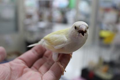 皆さん こんにちわ~ 明日、発売のゲームが待ち遠しくて わくわくしている結城です あ~早く一狩いきてぇぇぇぇ ・・・ では、本題に入ります。 今日は新しくきた鳥さんを ご紹介します。 まずは 大人気のジャンボセキセイが1羽入荷しました! すぐにお家が決まってしまうので 欲しい方はお早めに~ 続きまして イエローコキンチョウ 鳴き声、顔ともに可愛いです。 ヒナのコキンチョウの入荷はかなり稀 なのでしっかり育ててよく馴らそうかと 思います。 以上! では、さようなら~