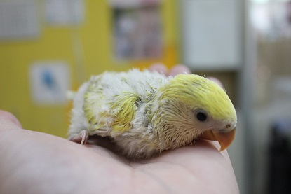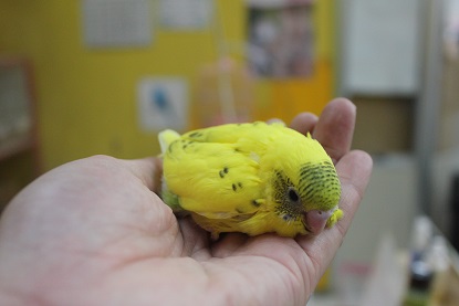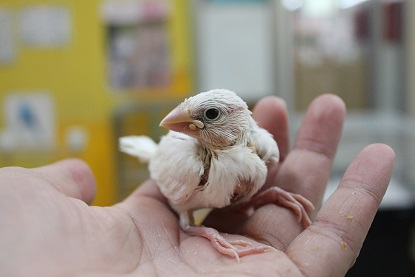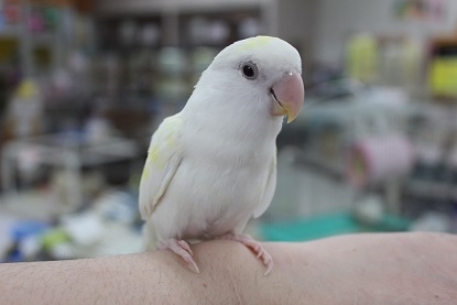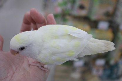 皆さん こんにちわ~ 久しぶりに中学の時の友達に会ったら めちゃくちゃ身長が伸びていてびっくりした結城です。 友達も私が大きくなっていて(横に)びっくりしたそうです。。 今日は 当店にいる珍しいコザクラインコを ご紹介します。 それがこちら コザクラインコのアルビノ 一般的にアルビノといったら体が白く、赤目ですが コザクラのアルビノは違います。 何が違うのかというと このように白の体に無数の黄色が混ざります。 これがアルビノです。 ちなみに全身が真っ白という個体はまだ発見されてないそうです。。 少しビビリですが 全くと言っていいほど噛みません!! 只今、ならし中ですがとってもいい子だと思います。 アルビノはホントにかな~り珍しいので是非、見に来て下さい 先日入荷しました、 サクラ文鳥とシルバー文鳥のヒナがめでたくお家が決まりました。 現在いる文鳥のヒナは シルバー文鳥 シロ文鳥 サクラ文鳥 各1羽ずつおります。 大変人気なので欲しい方はお早めに!! 以上 お知らせ 只今、10月末まで 「ふれあいコーナー」の手乗りインコたちがどの子でも 10%OFFです!! 実際に触れ合って気に入った子を いつもより安くお迎えできちゃいます!! 是非この機会に、ご家族に迎えてみては??