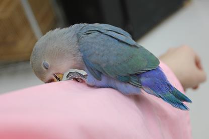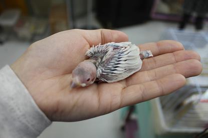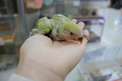 こんにちは松っあんです 最近にゅんたもさんのおかげでブログが若々しく感じます。 ネクタイ店長のお魚ブログにもありましたが 流山店の平均年齢。。。24.6歳。。。orz 昭和生まれが6人中2人だけというのも恐ろしいですね。苦笑 今日はだいぶ育ってきましたコザクラ3兄弟のご紹介 こちらパステルカラー。 手に乗せても全然逃げません! 肩に乗せても全然飛びません! 顔もキレイ系なのでイケメン?美女?さぁどっちだろー? こちらヴァイオレットカラー。 このコはよく指にじゃれつきます。 噛みもあま噛みなので痛くありません。 マス箱から出してアピールがすごいです。 どちらのコも馴れていて大変魅力的ですが 一番オススメは 松っあんの新たな相棒、『キャスバル』 3倍速?で動きます。 そういえば、最近ネクタイ店長が 松っあんの名前を赤い彗星の彼の名前に変えられていますが 私決してガ〇ダ〇ヲタクさんではありません。 たーまたま再放送を見ていてなんとなーく内容を知ってるだけです。 キャスバルと言う名前も3倍速?も分かる人にはわかると思います。 ちなみに平均年齢24.6歳以下のスタッフの方々は「???」だらけでした。笑 話がそれましたがキャスバル君、とってもベタ馴れなんです。 肩の上ではもちろん、 腕か肘あたりの中途半端なところで寝ます。 お客様にも「良く馴れてるわねぇ~」なんて言われると かなーり嬉しいです(松っあんが)笑 松っあん的に鳥のなかでもコザクラが一番好きなので 今以上にベッタベタに馴れさせてみせたいと思います どうか皆様、「青い羽のキャスバル」をお願い致します (きっとこれも分かる人には分か。。。以下略)