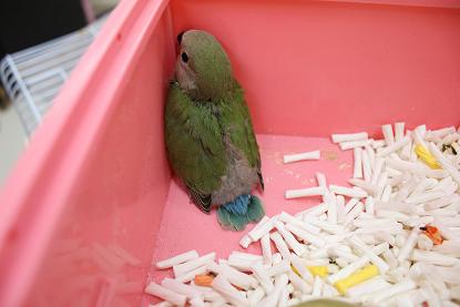 こんにちは松っあんです 3月になりましたね 最近昼時はポカポカ暖かくなってきて心地よいですね。 もう、雪とか寒い強風とか吹かないといいなぁ~ さて、最近鳥さんの記事ばかり更新していますが・・・ すみません。今回も鳥さんです もうすぐヒナエサ卒業のコがいい感じに馴れてきたのでご紹介! 2月生まれのセキセイイインコ『高菜ちゃん(仮)』 今日から肩乗りで激ベタナレ作戦中 肩乗りイヤじゃないみたいでチュルチュル耳元でお話してきます。 ご飯もとってもよく食べるんですよ! 結構馴れてきたみたいで↓↓↓ 誰かさんのせいで伸びきった松っあんのインナーの袖にもぐりこんでます。 ちなみに犯人はこいつ 裾と袖を引っ張るのがマイブームポポ嬢。 いい笑顔しやがってコイツー おもちゃで遊ぶのも好きみたい。 好奇心旺盛です! 高菜ちゃんと楽しく遊んでいると・・・ 何やら巨大猫ゲージから熱い視線が・・・ 高画質カメラ!ズームアップ!! ちょっと見えにくいですがアメショのしょうちゃんが・・・狙ってる笑 瞬きもしないでこのあともずーっと見てました。 もう1羽同級生の『生姜ちゃん(仮)』 このコも今度ご紹介しますね また明日鳥さん入荷しますのでお楽しみに~