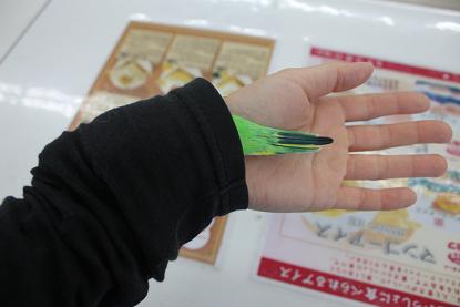 こんにちは松っあんです 今日は待ちに待ってやってきた『兄貴』をご紹介します。 勝田台店から限定出張してきました。 タイハクオウムの『ハクちゃん』です! 4月で4歳の男の子。 「コンニチハー」とか「ハクチャーン」っとおしゃべりがお上手です。 カメラ写りもバッチリ 背中や お腹を触るとふわぁ~っとふくらみます。 決して噛んだりしないとってもイイコです。 元の店舗に帰る前に「ミカン」「ドンブラコッ」など 知る人ぞ知るいろんな言葉、名言を覚えさせたいですね!笑