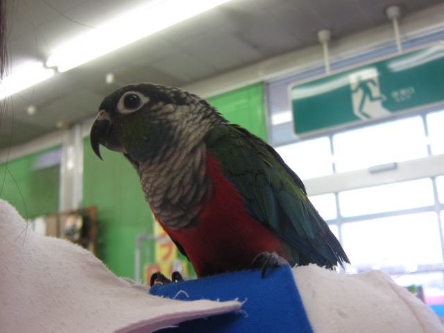 こんにちは。店長です。 久々に来ちゃいましたよ~。 大きいの。 燃えるよう真っ赤な尾羽! 立派な両足!! 右から見ても、 左から見ても、 ヨームです。 まだまだ、幼い顔つきですが、ヨームです。 小さいときの真っ黒な瞳はとっても癒されますね~。 ヒナエサも終わり、親えさに切り替わっていますので、手間がかからなくて Goodです。 そして、「夏まで待てない!夏祭り!!」 開催中なので、 ¥298000+税が、な、なんと!! 詳しくは店頭で! 家族に迎えればとっても幸せな生活が待ってるはず。 お待ちしております。