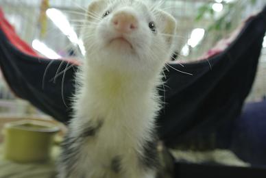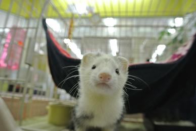 こんにちわ 店長です 昨日とは違って・・気持ちの良い「お天気」のようで 。。。お出かけしたいですねぇ~~ 遠くへ さて、昨日に続き『フェレット』のご紹介 なぜ分けたのかといいますとーー 個人的に今回のコを気に入ってしまいまして では このコ。 「マーシャルフェレット」 カラーは「パンダ」です。 H25 8月6日生まれの 女の子でーすっ 昨日のコと比べると、やや小ぶりですねっ ・・・すみません。。今回あまりまともな写真が ないのですが。 なにか・・たくらんでるのわかりますか?? !!! とんだ。。! そうです!!! フェレット、飛ぶんでスッ 何度奥に戻しても~「飛ぶ」んです~~~ もはや。。何がなんだかですよねっ?? なかなか「フェレット」の飛んだときの 『腹』って見れないですよねぇ~~ で、ワタクシ面白くなってしまい ず~~~~っとやってたら、サスガに疲れた&飽きたらしく 寝ちゃいました しばらく良い遊び相手、みつけちゃいましたねっ ふふ。。 気になるようでしたら、遊べますのでお気軽に声かけてくださいませー。 ランキング参加してますっ よかったら「ポチっ」一つ、よろしくお願いします ワタクシのやる気のモトでございますので そうそう、昨日お伝えした『3頭』やってまいりました ちょっとずつご紹介していきますのでお楽しみに~~ 「MIX犬」、たまらんっ! とっても「ブサカワっ~~」。 店長でした