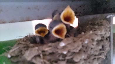 こんばんわ 店長です 今日の記事は「お店」のこととは 関係ないと言えば・・ナイのですが・・気になる方は お付き合い下さい 5月24日に書きました「愛の巣」。 まだかな?まだかなぁ?? なんて毎日下から気にしていたら・・「夫婦」が なんだかせわしく行ったりぃ~来たりっ。 あっ!!まさか・・ で、なんの気なしに下を通ったら・・・・!!!! チッチ チッチ・・聞こええてくるじゃないですか しかも!!頭、見えてるしぃーー ということで、ワタクシの好奇心が止まらず・・・ 撮りました。 そうです!! 写真に収めました!! 1・・2・・・3・・4・・なんて数えつつ・・ チョット呼びかけたら 一斉に「口」開けて 「メシィ~~~~」です なんとか無事に育っているようですなっ 高ーい脚立に上り、「夫婦」の警戒鳴きにも負けずしっかり確認できてよかったぁ~~ あまりに しつこく撮影していたので 「夫婦」は・・・ 遠くより「監視」していました・・ 申し訳ない「夫婦」たち。 ということで、本当に全く関係ない内容で すみませんでした また明日からちゃんと情報をお届けいたしますので よろしくお願いしまーす コメントいただきました 「M・H」さま ご無沙汰しております。 その後「7代目」さんは元気なのでしょうか?? 「ホテル」の方は全く問題ありませんよ 一応、お電話でも良いのでご予約してもらえると助かります 今週は、木曜日お休みをいただいておりますので、せっかくなので その日以外にご来店いただけたら うれしいですねっ ブログみていただき ありがとうございます!! 言ってもらえると、とっても励みになります お待ちしておりまーす! 店長でした