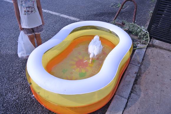 こんにちわ 店長です 連休、みなさんいかがお過ごし?? 連日「猛暑」続いていますので、熱中症気をつけてくださいねぇ~ さて、こう暑い日が続いているので店では よく外でシャンプーやら~ 日光浴やら~ 水浴びをやっています で、その内の見ていて・・超涼しげなぁーーー 「アヒル」の水浴びっ 以前にも登場しましたよねっ もぐったり~~ ぷりぷりしたりぃ~~ !! 気付きましたか?? そうです 以前は無機質な、アクリル水槽だったんですけど・・ 今は・・・!!!! 『お子様プール』 担当の きょうちゃんが買ってきて楽しげに広げていたので・・・眺めていたら こういうことでした 外チョイチョイ水浴びしているので、ご近所のお子さんも・・・ うらやましそ~~ぅ に眺めていました そんな「アヒル」さん! 無事お家が決まりましたっ おむかえまで、お時間がまだありますので 引き続き「水浴び」は行ないまーす 連休「中日」です! ちょっとした癒しにいかがでしょうか?? ご来店おまちしておりま~~す コメントいただきました 「おおもり」さま 企画第一弾がご好評でおわり、今回第二弾を続行中です! ケージに入っている姿もかわいいのですが・・やはり!自由な姿は これまた!!たまりませんよ~ お家のコは「暑さ」大丈夫でしょうか? チョット心配です またお近く通ったら、ぜひお店にも寄って行ってくださいね! お待ちしております 店長でした