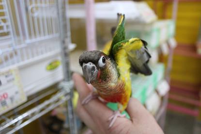 皆さん こんにちわ~ 夏に向けて本格的に痩せたい結城です。 夏といったらプールやら海やらで裸になるイベントが 増えてきます。 今のこのたるんだ体を人前にさらけだすなど恥ずかしくて できないので運動+食事の量を減らしていこうと思います!! ジムには行っているのですがよく 「また、デカくなったな!」と言われるので食事も変えることにしました! とりあえず炭酸飲料は2ヶ月間は飲みません!!!(時と場合にもよる) さて、今日は 当店オススメの鳥さんをご紹介します。 ベタナレセキセイインコ 人間大好き、こちょこちょ大好き、ご飯大好きな とっても甘えん坊な子です ふれあいコーナーにいますので遊んであげて下さい! コチラもベタナレ ワキコガネインコ おとなしくずっと肩に乗せられます ケージに近付くとものすごい勢いで出してアピールします 最後に 新しく入荷した アオハシインコ イエロー まだまだヒナヒナですがよく食べます! 大人になった姿が見たいです!! 以上です。 お知らせ 不定期で開催されます 「ウサギとケージを一緒にご購入すると5.000円引き」 キャンペーンを只今、絶賛開催中です!! *対象外のウサギもおります とってもお買い得なこの機会に是非、 当店の可愛いウサギをご家族に迎えてみてはいかがですか??