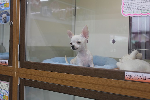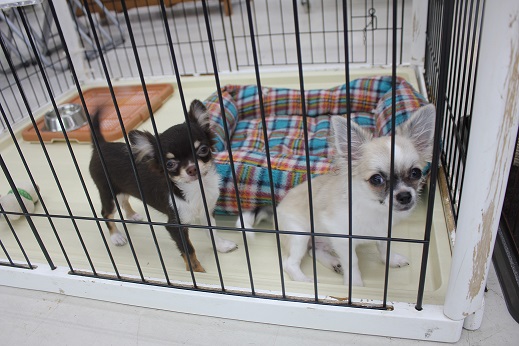 こんにちは松っあんです 時間がないのでざっくりとですが新顔さんのご紹介 かなりワチャワチャしてますチワワサークル笑 チョコカラーのコを紹介したいのに うす茶ちーちゃんがお邪魔をするので 店長にお預かりしてもらい… 改めまして! ずっと楽しみにしてました! 昨日二和店からやってきたN島店長絶賛のチョコタンチワワです H28.2.18生まれの男の子。 月齢にしてはかなり小柄でなによりもイケメン 性格もとっても良いコなので一瞬にして心奪われました笑 チョコちゃんのソロ写真も撮れたので そろそろうす茶ちーちゃんをお迎えに 接客中だった店長。 うまいこと足に挟まってました笑 この時のちーちゃんの表情が素敵だったので記念に1枚! 2匹とも楽しそうにサークルで遊んでます ぜひ、おさわりに来てください おまけに。 いつもうす茶ちーちゃんとサークルで遊んでたアザラ氏(仮名) 今日はチョコちゃんを出したので犬舎にて。 ホントは一緒に遊びたいアザラ氏。 ずーっとサークル眺めてこの表情。笑 たまらんです ざっくりですみません松っあんでした